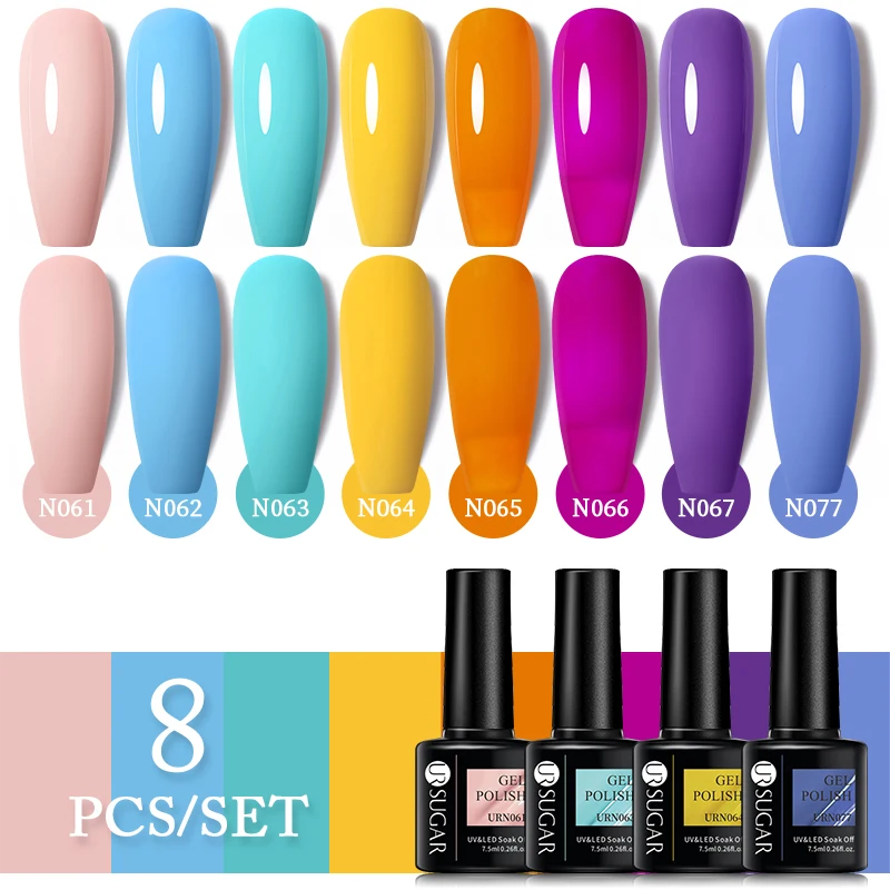 Спецификация: Бренд: UR SUGARТип: Гель-лакКоличество: 2/3/8 бутылокОбъем: около 3/2 мл * 8/Подходящая лампа: УФ-лампа светодиодный ная лампа Посылка UR SUGAR 2/3/8 шт/набор 7,5 мл набор цветных гелей Особенность: 100% Новинка в розницу и высокое качество.Подходит для нанесения на ногти из УФ-геля, акрила, натуральные ногти и т. д.Укрепите ногти прочным блестящим покрытием.Идеально подходит как для профессионального, так и для личного использования. Профессиональное использование: Шаг 1: придайте ногтю форму и отполируйте поверхность ногтевой пластины.Шаг 2: нанесите тонкий слой базового геля и просушите под УФ/светодиодной лампой.Шаг 3: Нанесите слой УФ-геля и просушите под УФ/светодиодной лампой. (Повторите этот шаг, пока вы не останетесь довольны эффектом)Шаг 4: Нанесите верхний слой геля без протирания и высушите под УФ/светодиодной лампой. Примечание: * Хранить в недоступном для детей месте.* Не касайтесь ушей, носа, рта, глаз и других частей.* При покраснении или других побочных реакциях немедленно прекратите использование.* Хранить в прохладном месте. Хранить вдали от солнечного светильник или экстремального воздействия светодиодный Ода/ультрафиолсветильник.