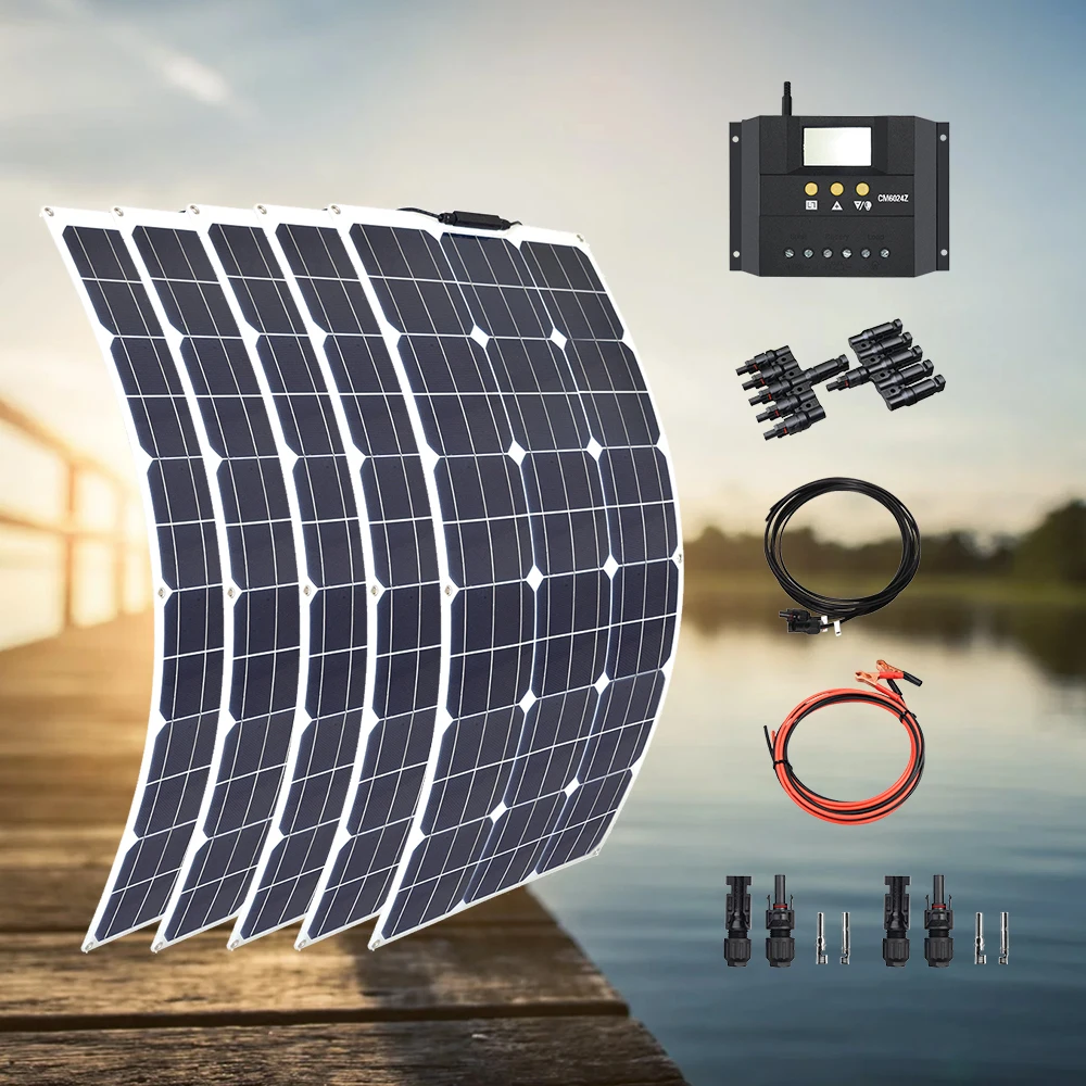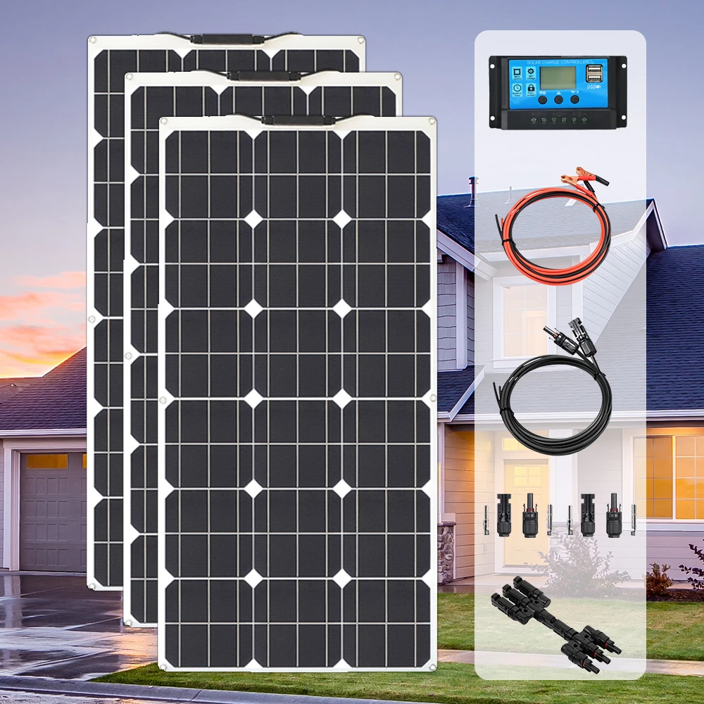 Комплект солнечной панели 1000 Вт 800 Вт 600 Вт 400 Вт 300 Вт 200 Вт 100 Вт, гибкие солнечные панели для 12 в 24 В, модуль зарядного устройства, солнечная панель