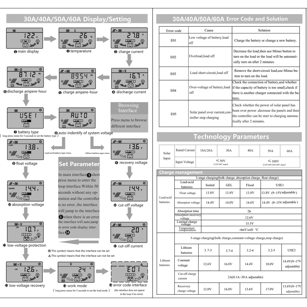 2. 2 шт. 50A 12v/24v Контроллер заряда для фотоэлектрических систем