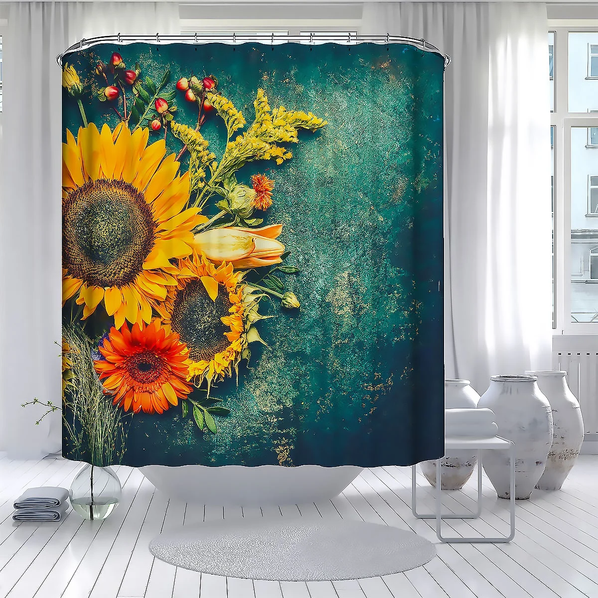 Винтажный набор для ванной комнаты, декоративная темно-зеленая душевая занавеска с принтом подсолнуха, чехол на сиденье унитаза, коврики для ванной, дверной коврик, набор занавесок для душа