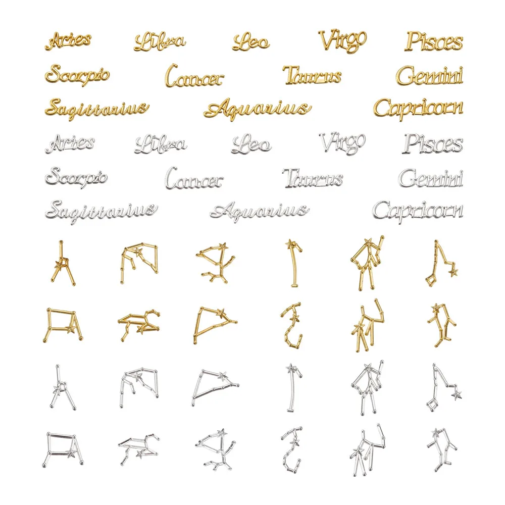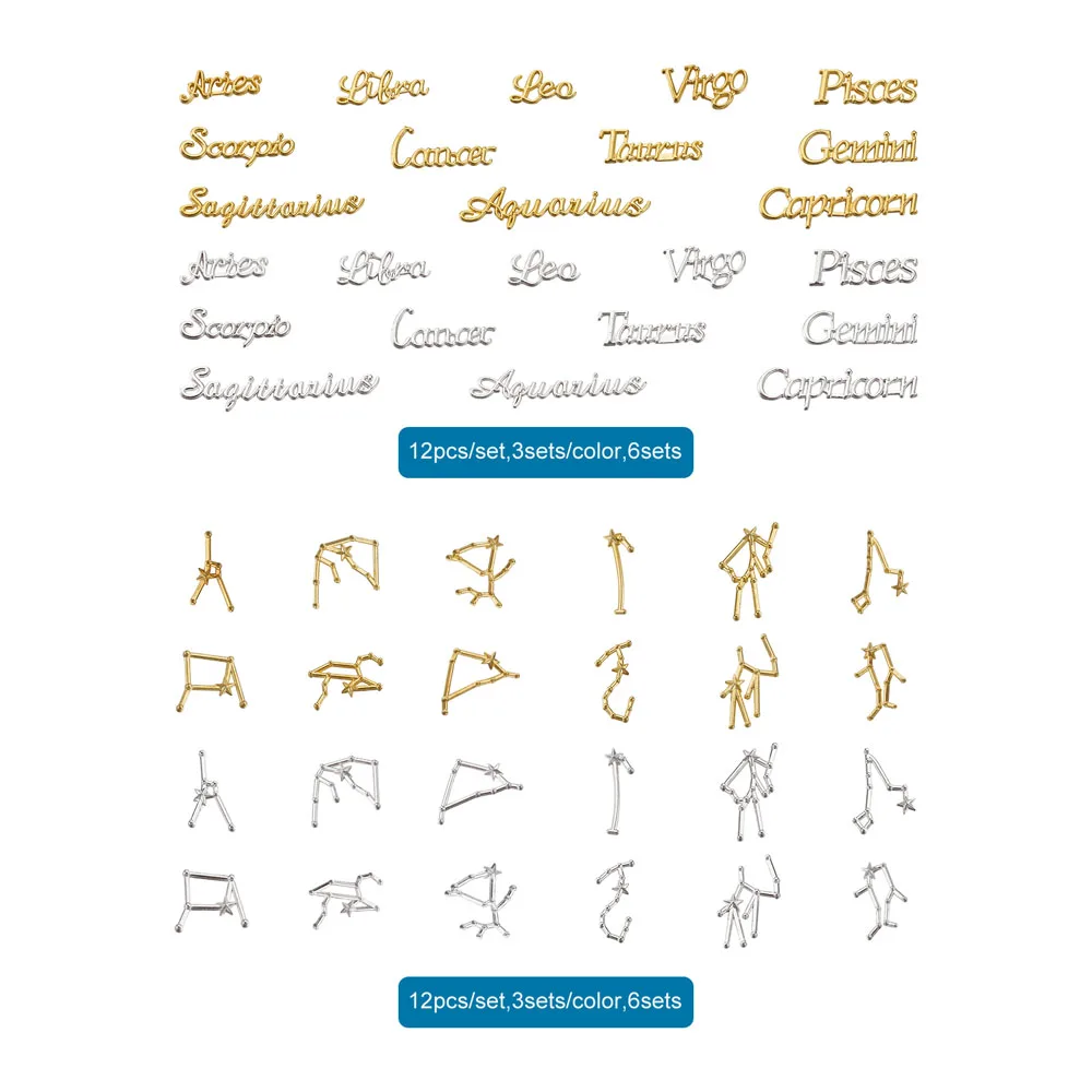 12 созвездий кабошоны из сплава: длина около 24 мм, 12 шт./компл., 2 цвета, 3 комплекта/цвет, 6 комплектов;