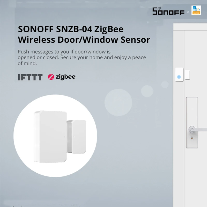 4.SONOFF SNZB-04Это беспроводной дверной/оконный датчик ZigBee two-in-one, который можно поставить на дверь или окно, чтобы сообщить вам с оповещением, если ваша дверь или окно открыты или закрыты, дополнительный уровень безопасности для вашего дома.
