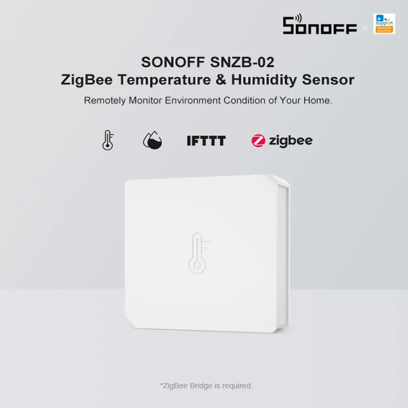 Подключите мост к SONOFF SNZB-02 Tem.& Hum. Датчик для определения температуры в реальном времени и влажности вашего дома, затем вы можете включить/выключить вентилятор или увлажнение, чтобы изменить комфортный уровень.