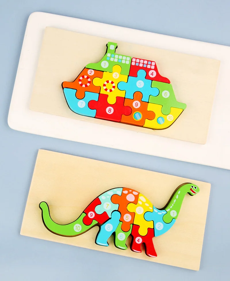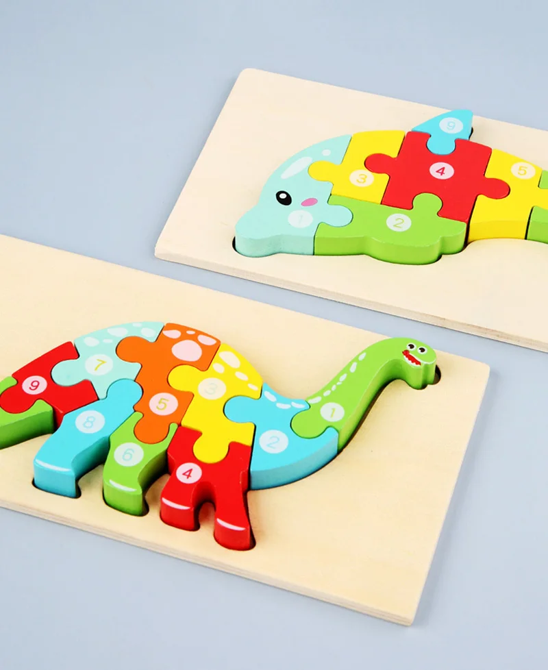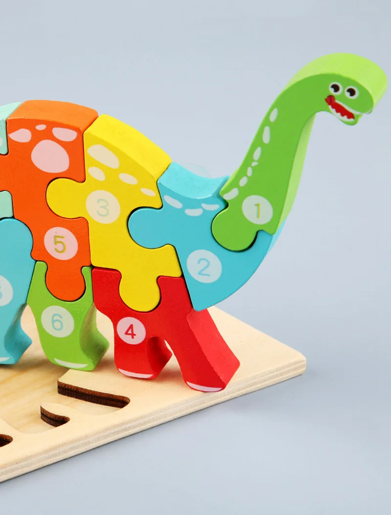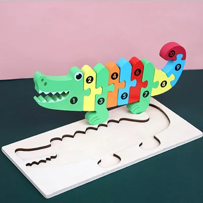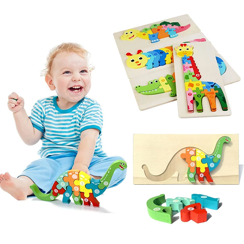 Детский деревянный 3D-пазл, динозавр, жираф, цифры животных, голово...