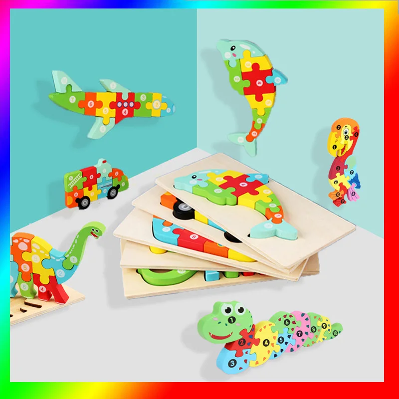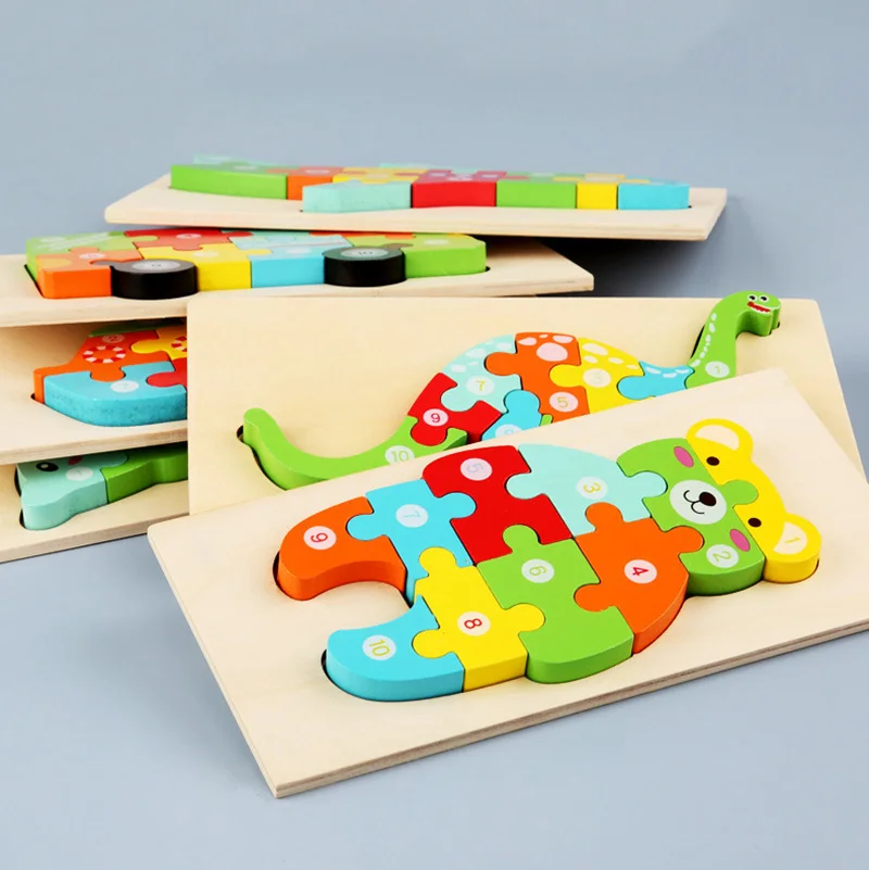 Детские игрушки Монтессори деревянный пазл 3D Животные головоломки ...