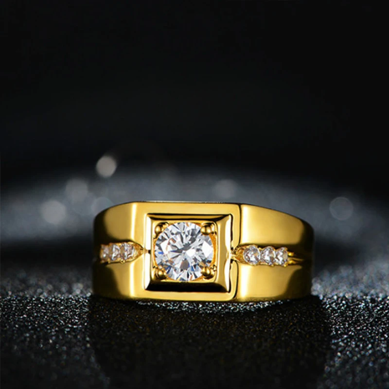 Мужские и женские модные классические властные инкрустированные Блестящие Стразы золотого цвета кольцо подарок ювелирные изделия