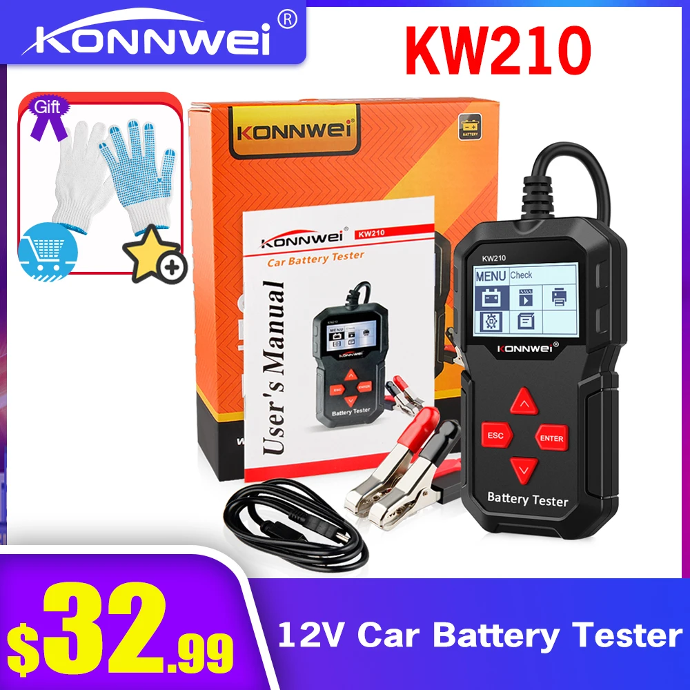 Автоматический Смарт-тестер KONNWEI KW210 для автомобильных аккумуляторов, 12 В, Автомобильный анализатор аккумуляторов 100-2000CCA, тестер для запуска автомобильных аккумуляторов