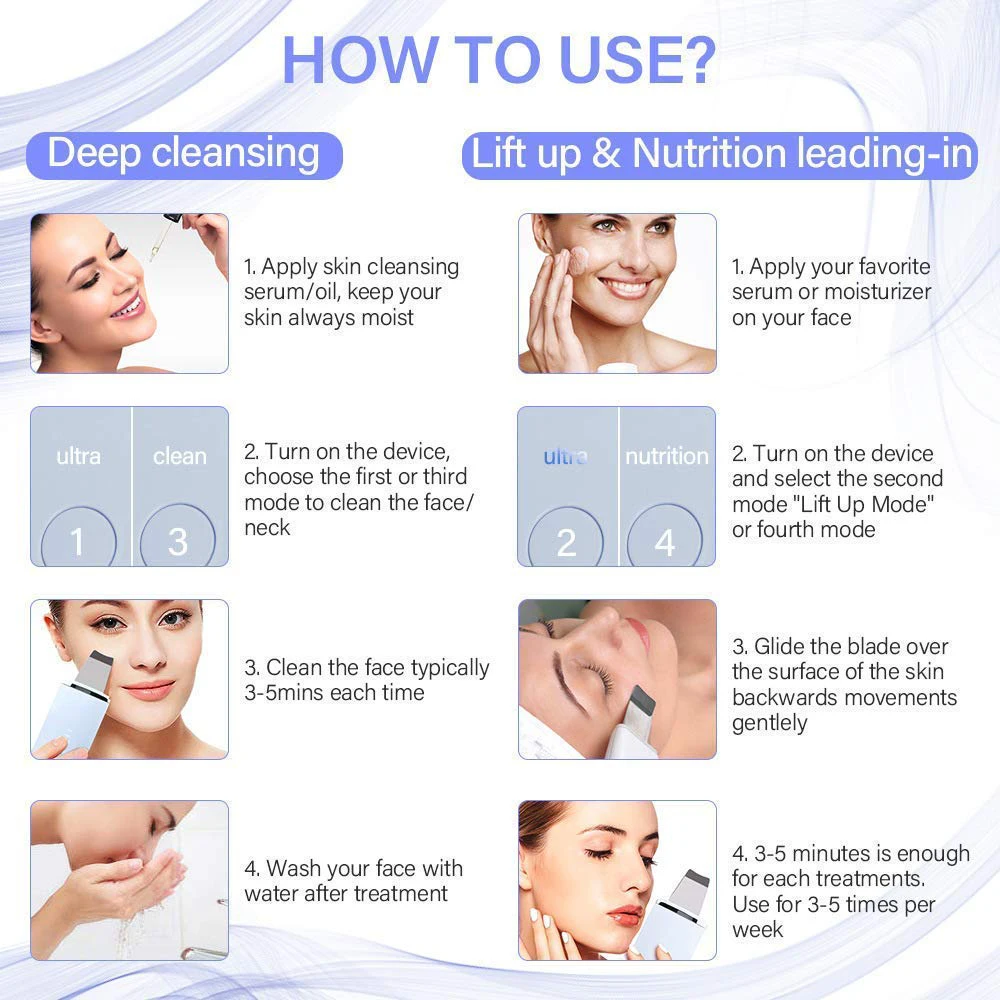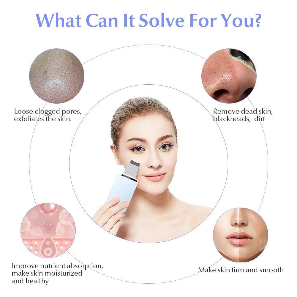 Ультразвуковой скруббер для кожи Deep аппарат для чистки лица, лопатка для очистки пор лица, скраб для кожи лица, наборы для ухода за кожей