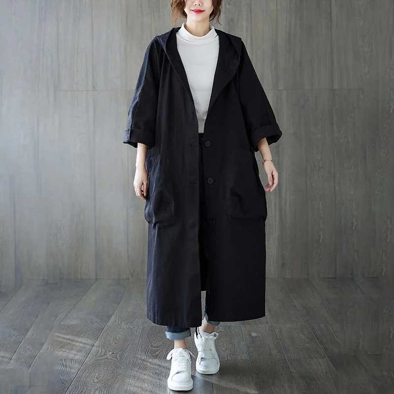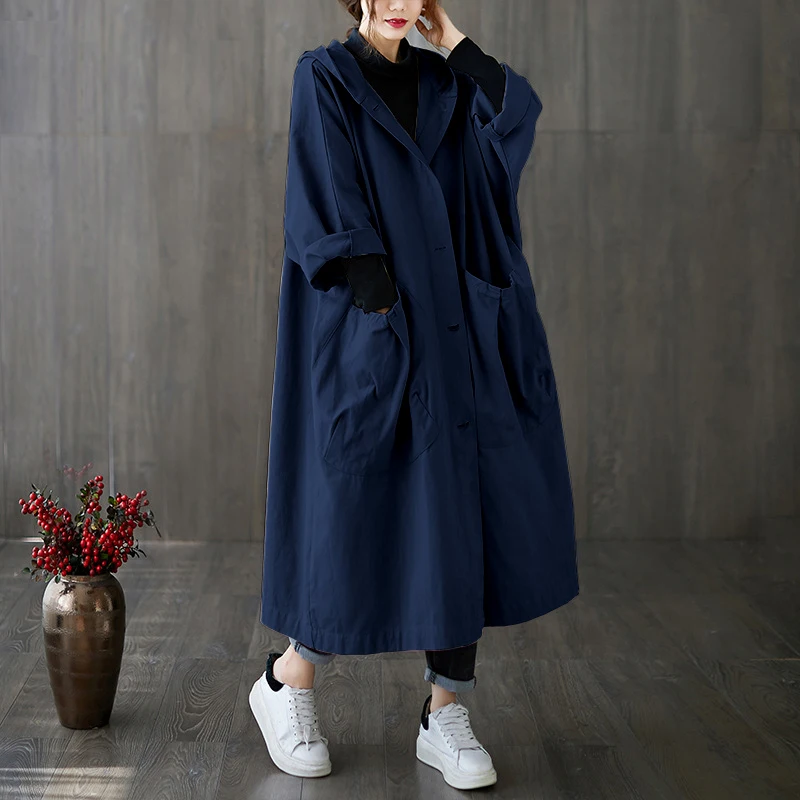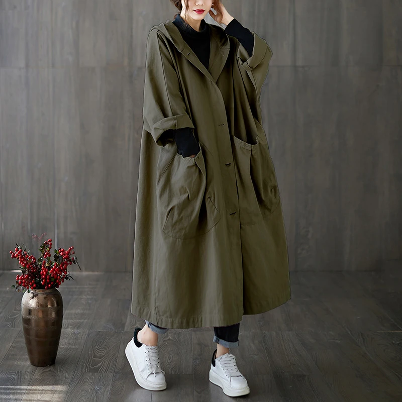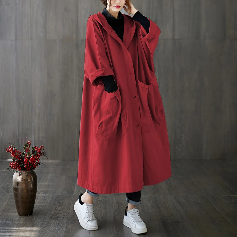 Женский тренчкот с капюшоном Oshoplive, тренчкот с большими карманами и длинным рукавом, Офисная модная верхняя одежда в Корейском стиле, женская осенняя одежда