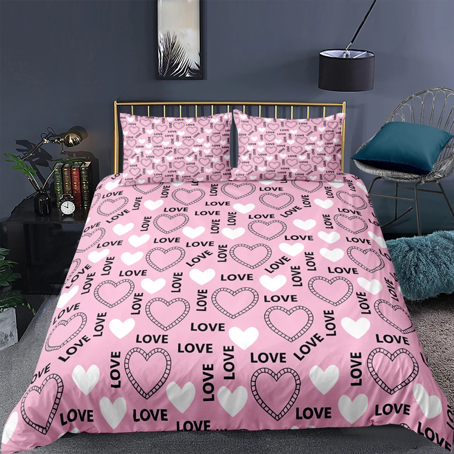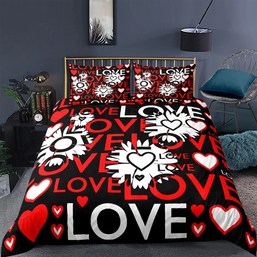 WOSTAR Комплект постельного белья с 3d принтом, комплект пододеяльника, свадебный дизайн, роскошный комплект кровати с красным сердечком, пододеяльник большого размера с наволочкой