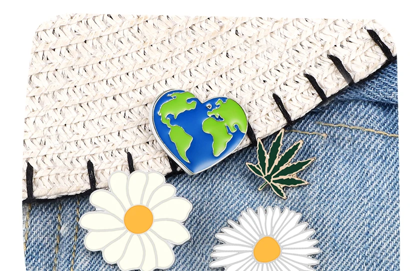 Броши с милыми цветами, значки с маргариткой, Кленовым листом, эмалью, сердечком, землей, значок для женщин, мужчин, детей, ювелирные изделия, аксессуары для шляпы, сумки, джинсовой лацканы