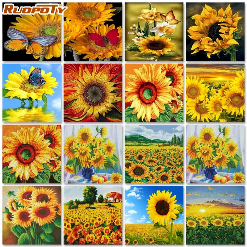 Алмазная живопись RUOPOTY, цветы, вышивка крестиком, алмазная вышив...