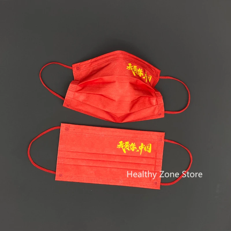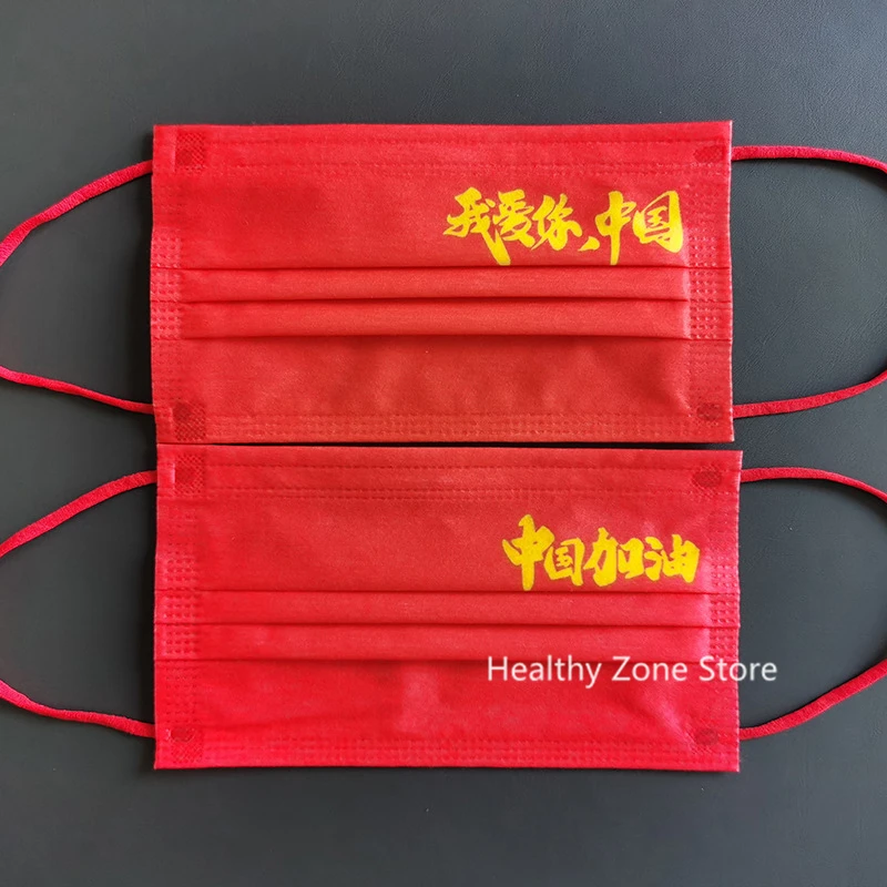 10-200 шт. одноразовые китайские маски I Love You со ртом для лица, красно-белые трехслойные бриллиантовые дышащие безвредные для кожи маски