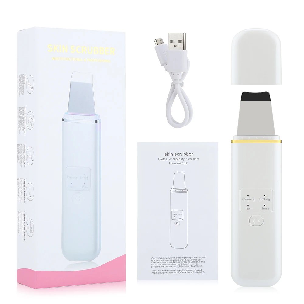Ультразвуковой скруббер для кожи лица, шпатель для кожи, EMS, средство для удаления угрей, очиститель пор, глубокое очищение лица, пилинг, лифтинг, устройство, инструмент для красоты