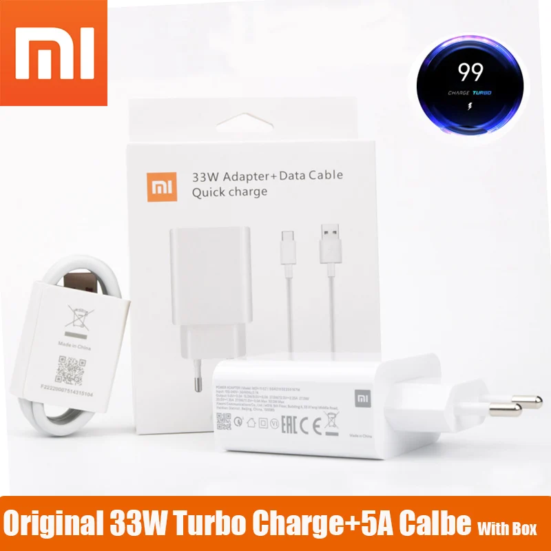 Зарядное устройство 33 Вт для xiaomi с европейской турбозарядкой, оригинальный кабель type-C для Xiaomi redmi note 9 pro, POCO X3, nfc, Mi 10, 9, 9t pro, note 10, 10X LITE