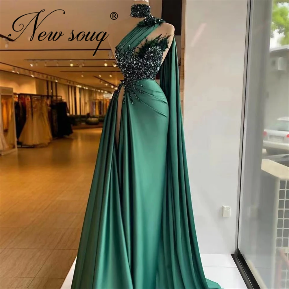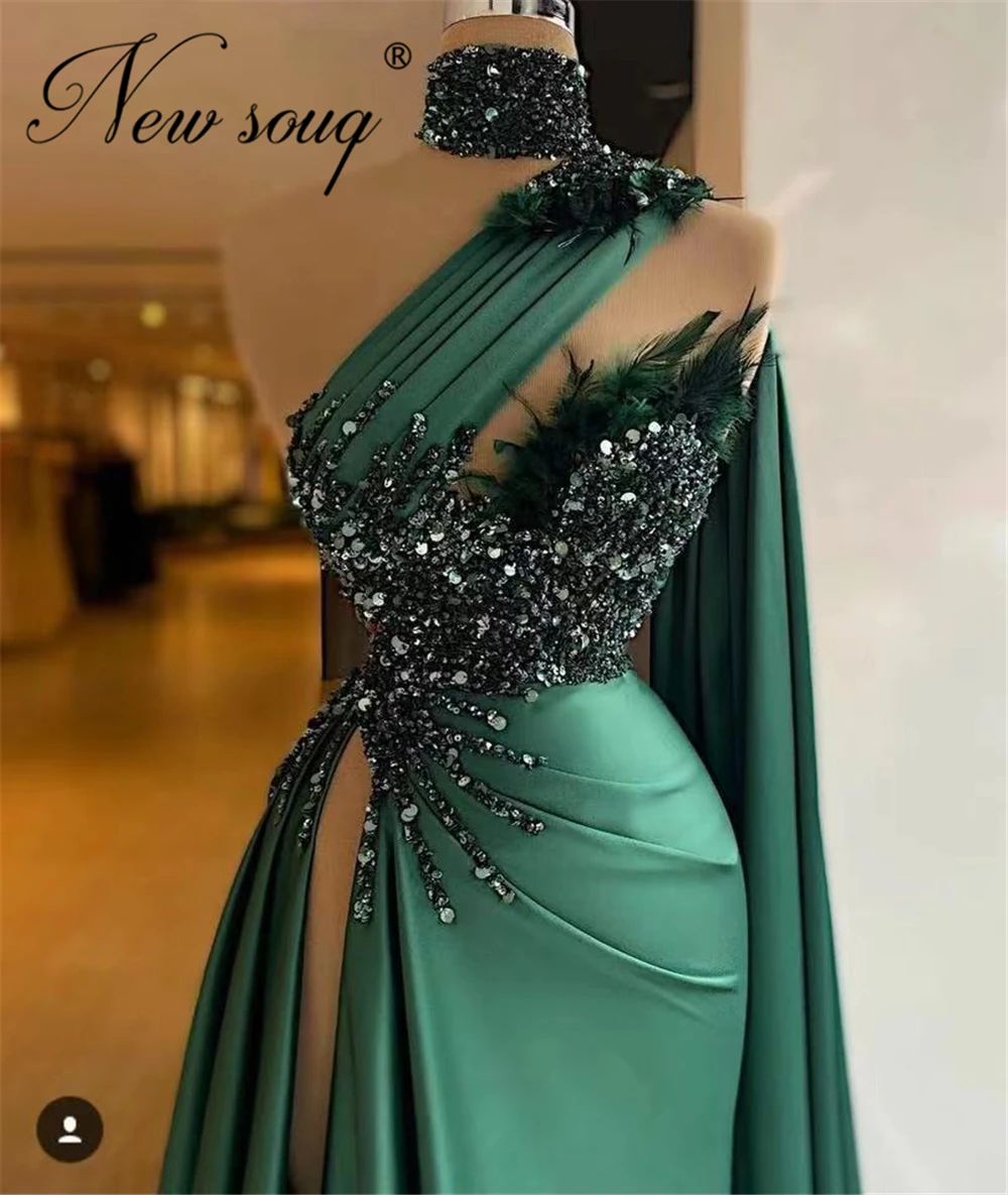 Вечернее платье с перьями от кутюр, зеленое вечернее платье, длинные платья для выпускного вечера в арабском Дубае с юбкой-годе, африканские женские вечерние платья на заказ, 2021