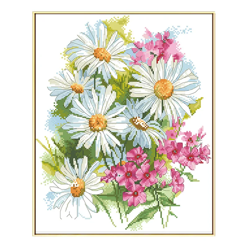 Белая хризантема Вышивка крестом наборы узоров с цветочным принтом наборы для рукоделия 11CT 14CT DIY вышивка украшения дома картины