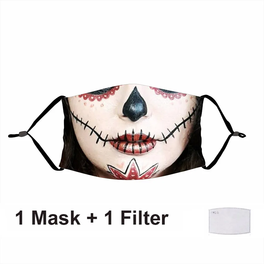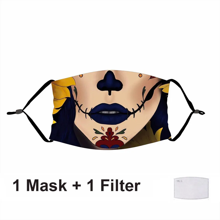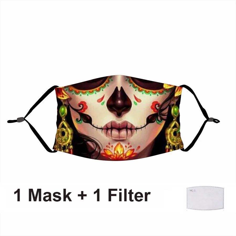 День мертвых маска череп Косплей Мода лицо печать Маски вечеринка Хэллоуин Забавный Скелет Лицо Обложка мексиканский фестиваль Катрины