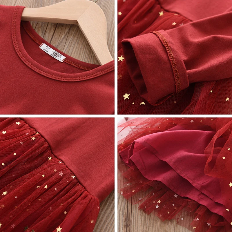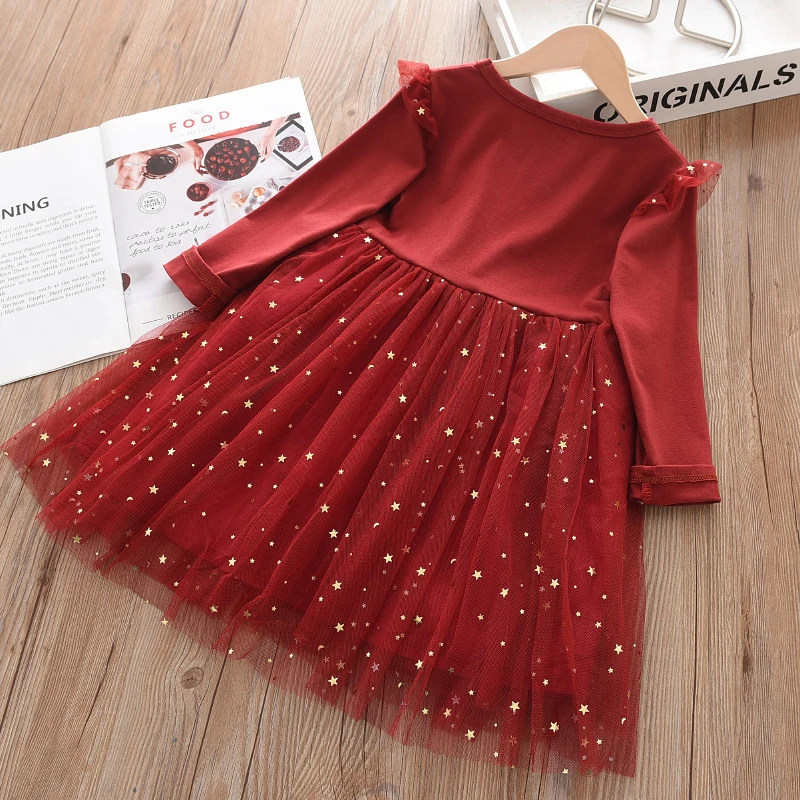 Платье принцессы для маленьких девочек, весенне-осенние праздничные костюмы вечерние длинным рукавом для малышей, детское Сетчатое лоскутное платье с блестками и разрезами