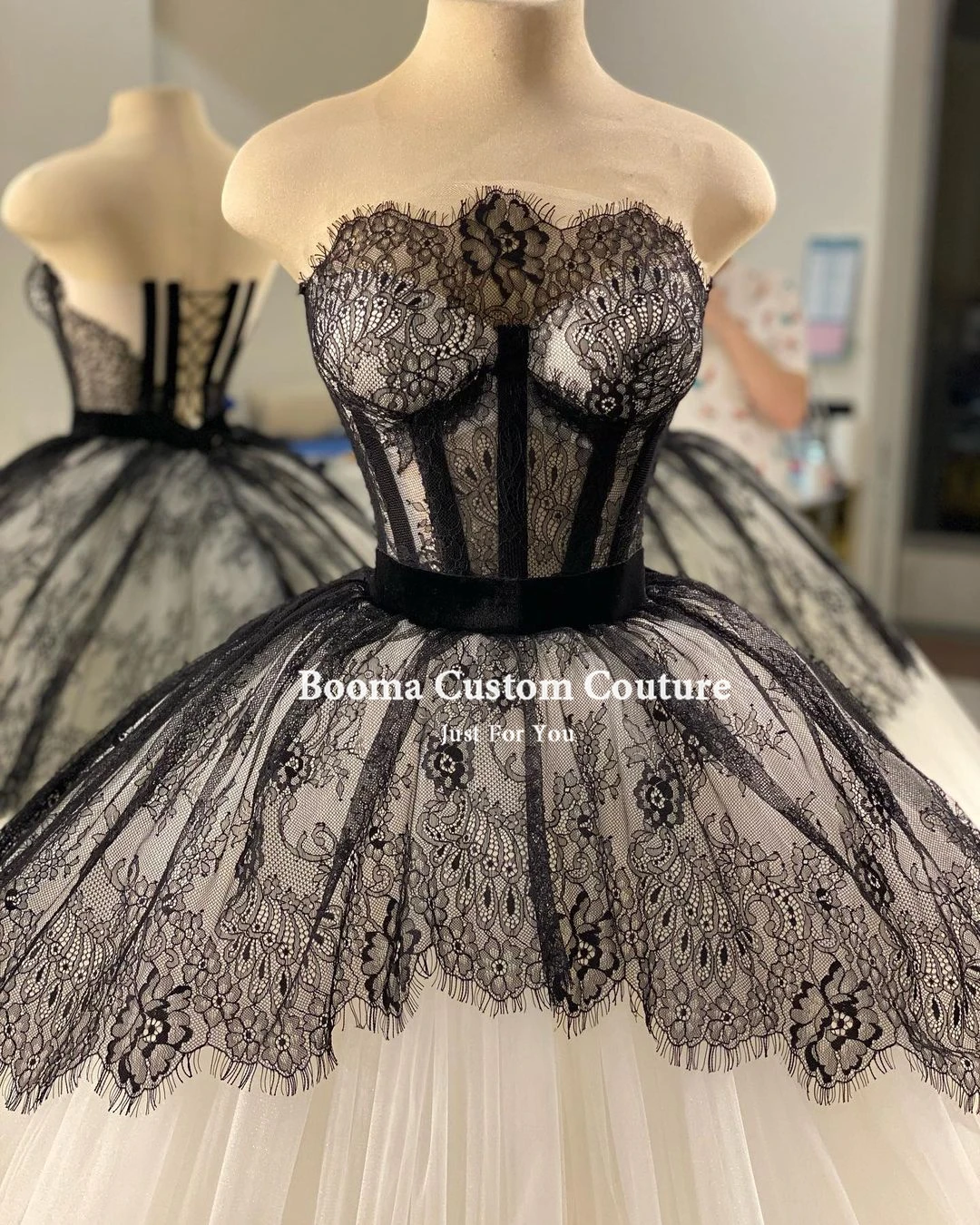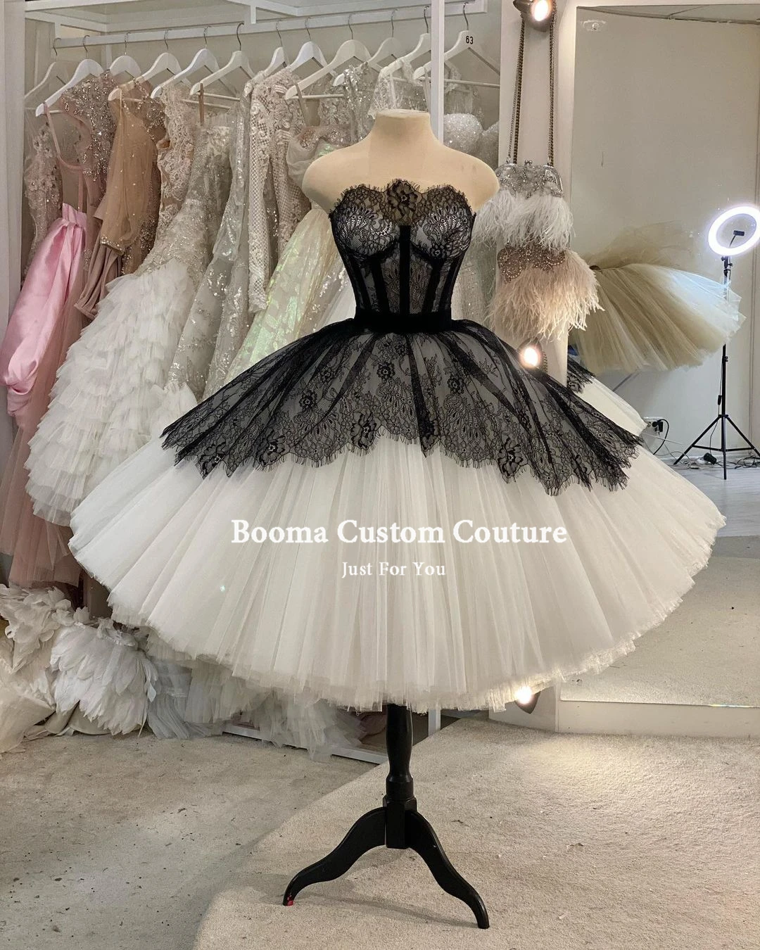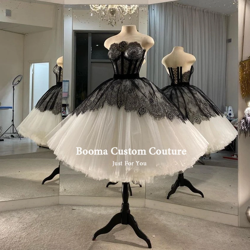 Простое бальное платье Booma, короткие платья для выпускного вечера, Черный Кружевной Топ без бретелек, вечерние платья длиной ниже колена, пышная юбка, вечерние платья