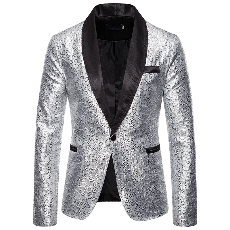 Блестящий мужской золотистый блестящий серебристый Блейзер, модный блейзер с воротником-шалью на одной пуговице, мужской блейзер для сцены, певицы, мужской костюм для вечеринки