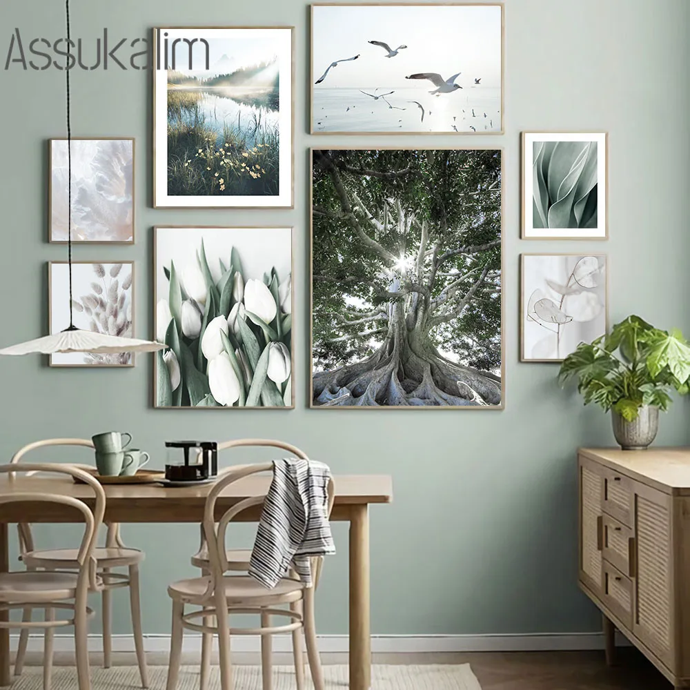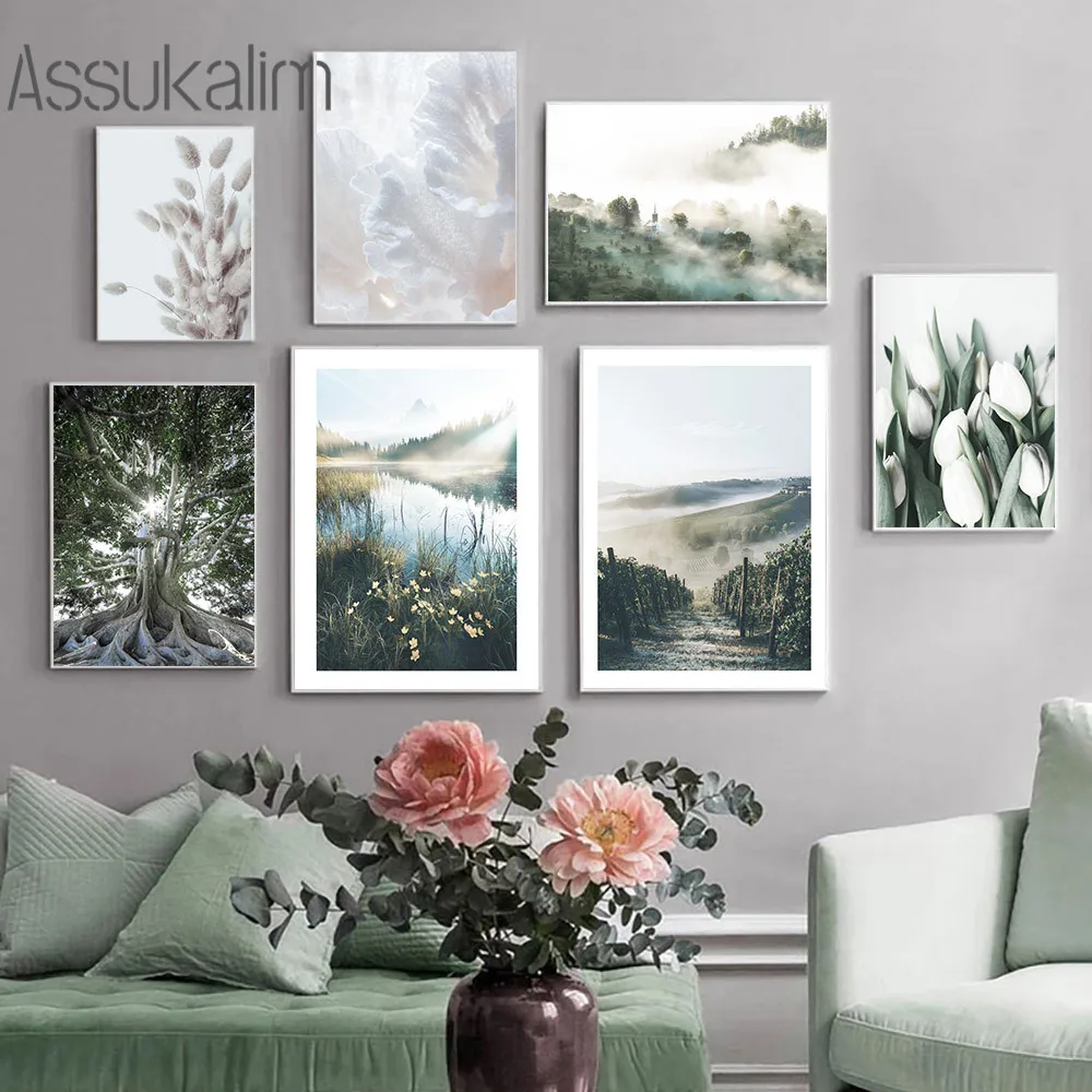Настенные художественные плакаты с изображением травы, озера, цвето...