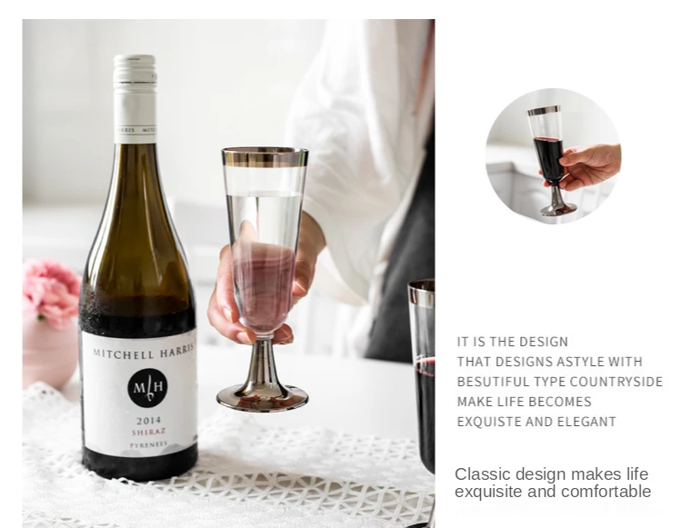 6 шт.компл. 150 мл Одноразовая чашка для шампанского с золотым обод...