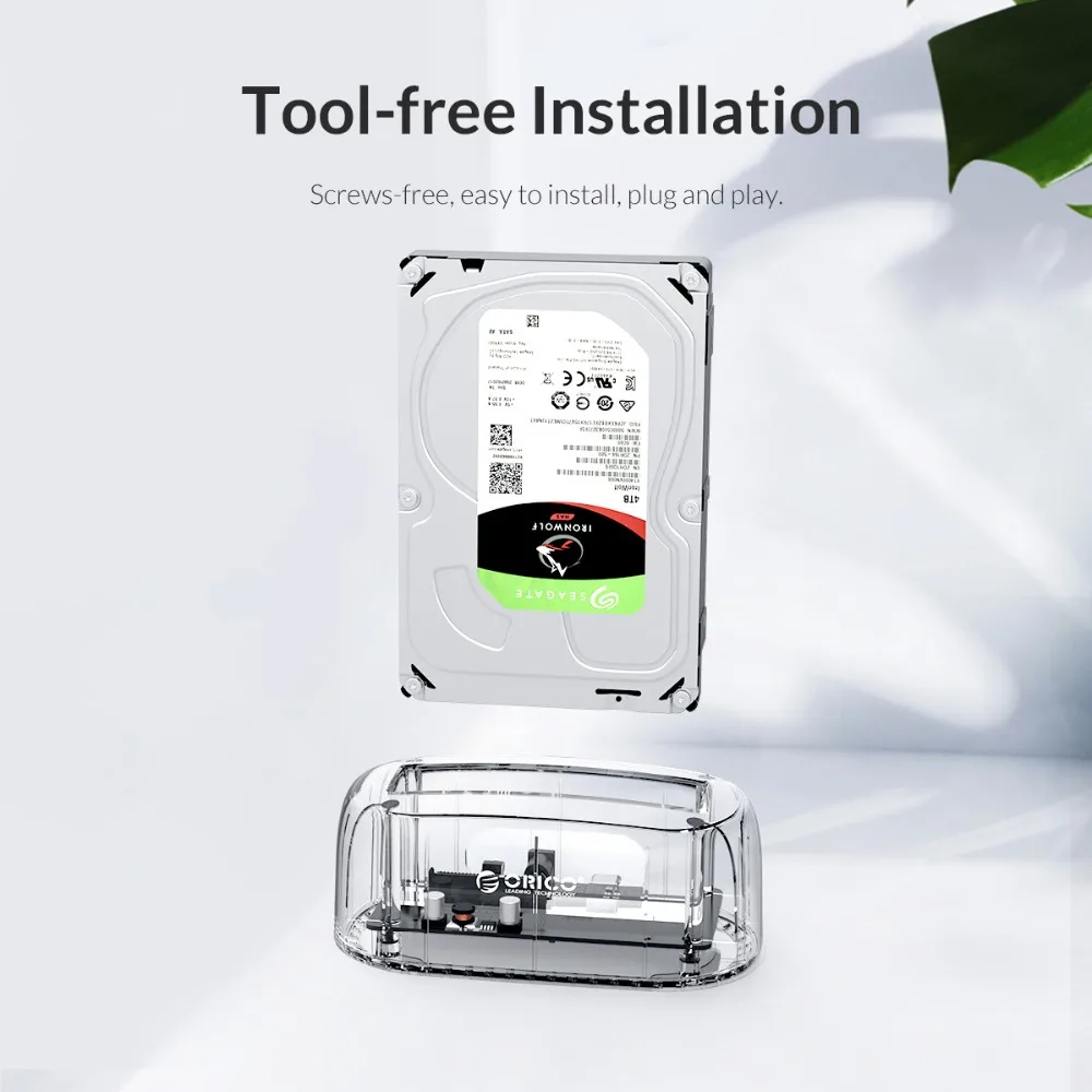 Док-станция ORICO для жесткого диска, 3,5 дюйма, USB на SATA, прозрачная, USB3.0, 5 Гбитс, с адаптером питания 12 В, чехол для жесткого диска ORICO 6139U3
