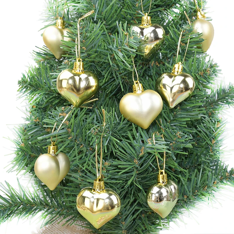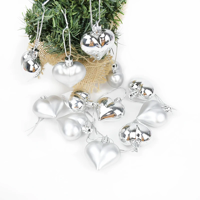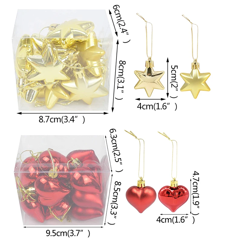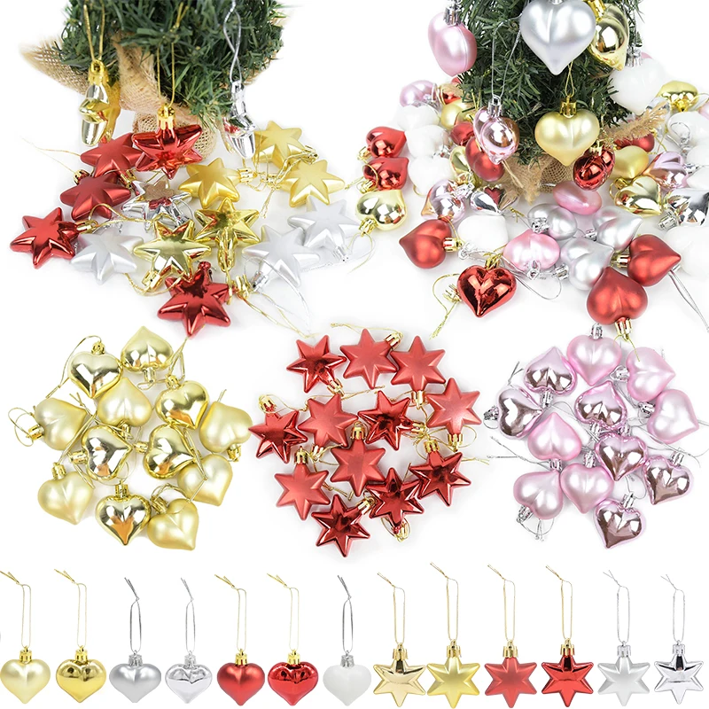 Украшение для рождественской елки, пластиковые шары в форме сердца, звезды, красные, золотые, серебряные, 12 шт.