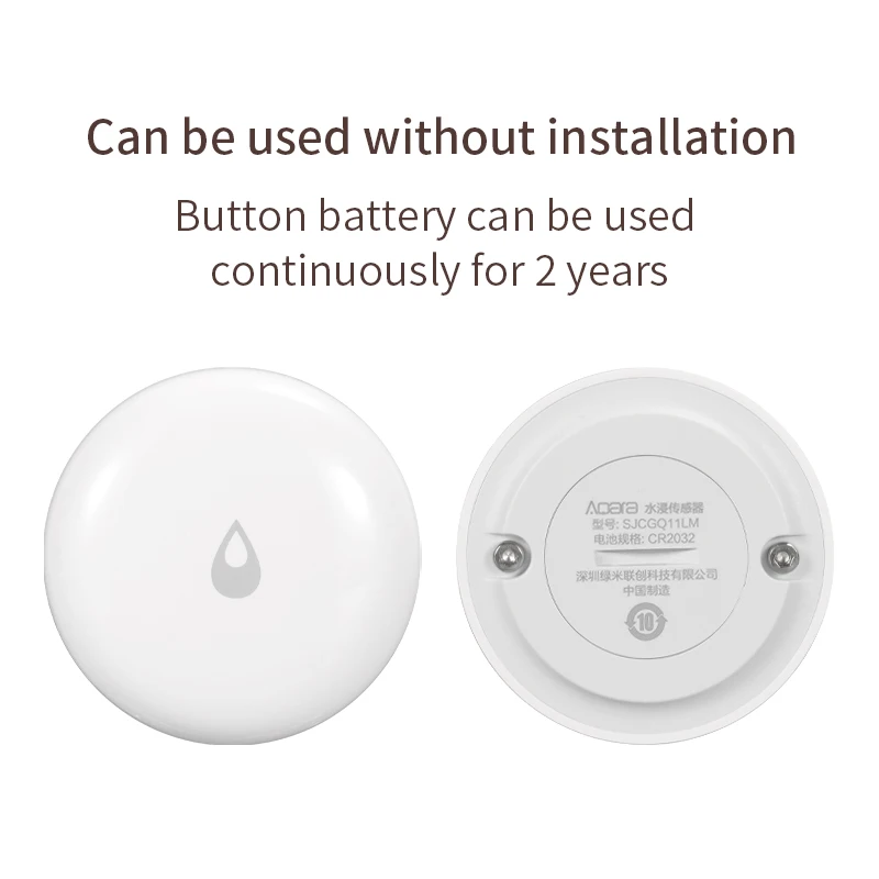 Умный датчик воды Aqara может своевременно обнаруживать в воде и удаленной сигнализации через приложение. Прочный аккумулятор используется для двух лет и может быть заменен. Класс водонепроницаемости IP67, идеально подходит для eave, сада, двора, балкона и т. д. простой модный дизайн, это не только датчик, но и украшение. Технология создает счастливую жизнь