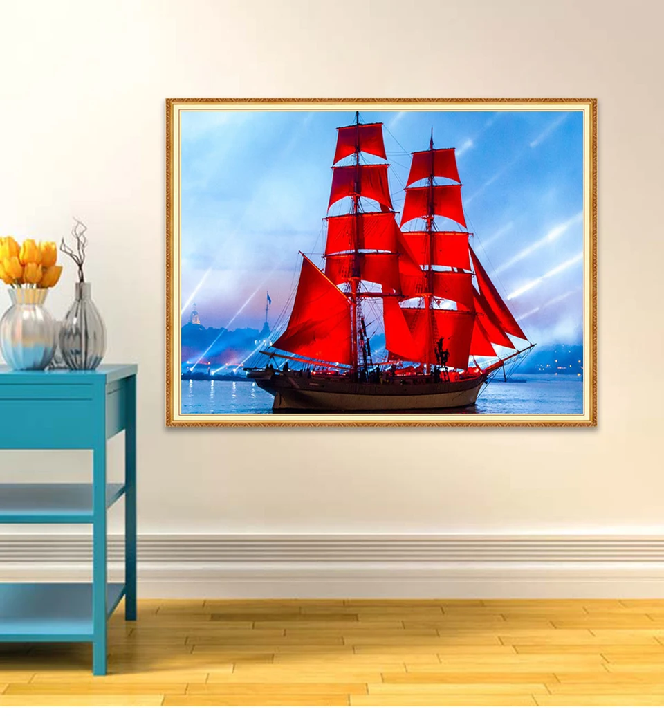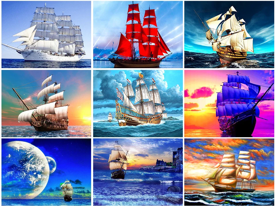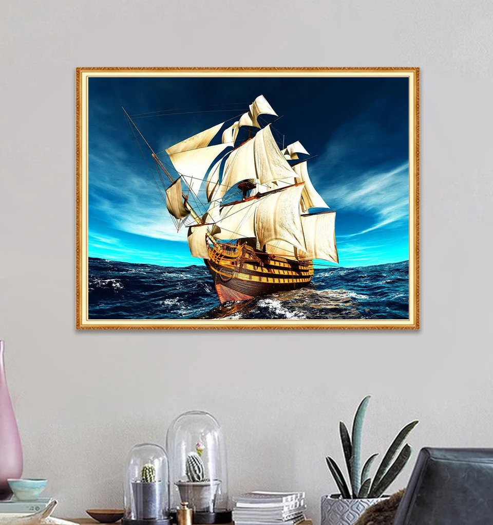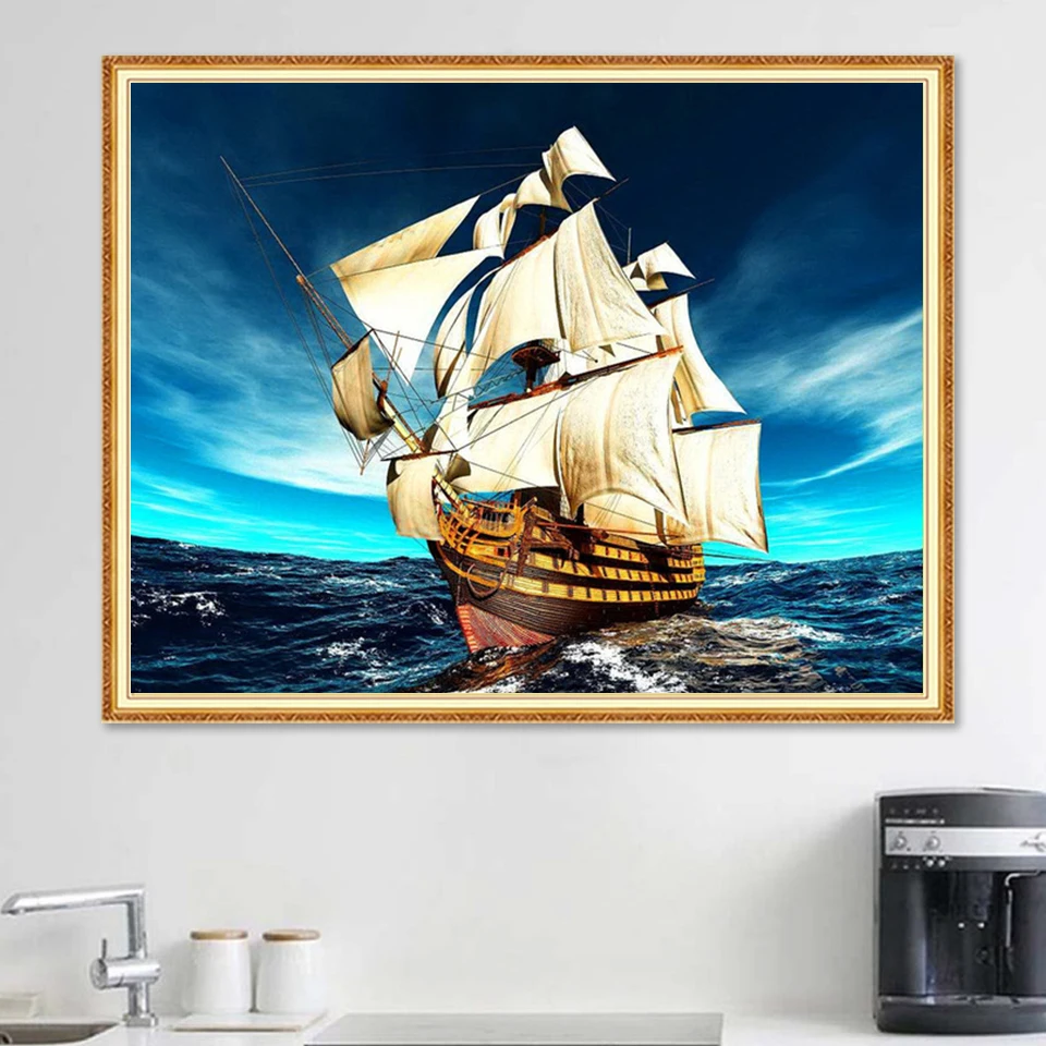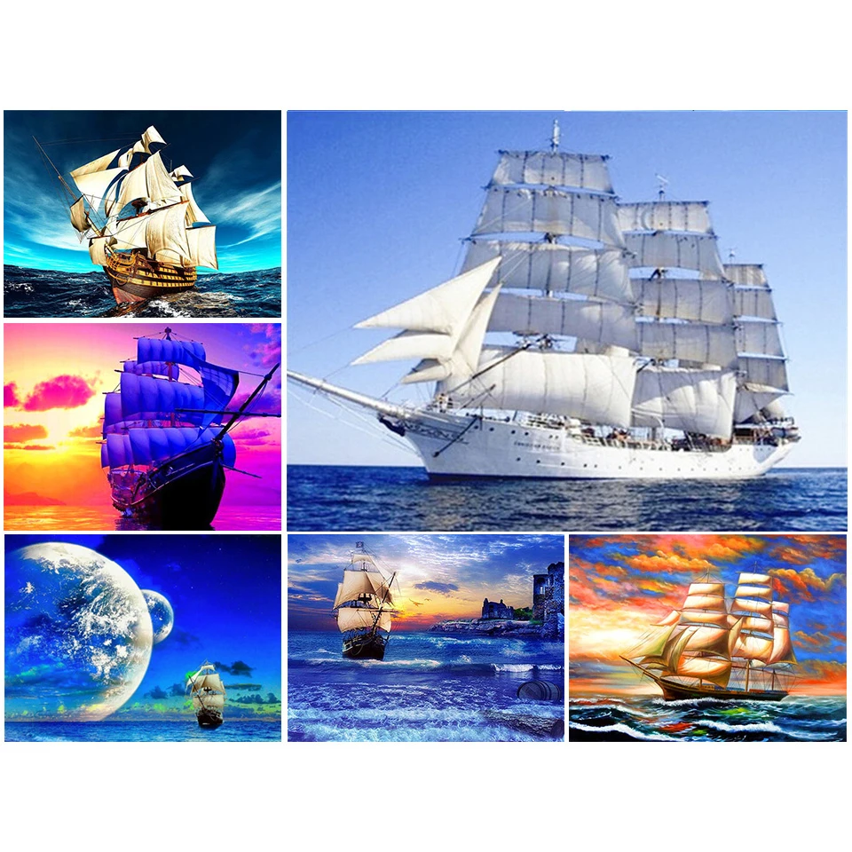 Алмазная 5D картина сделай сам, корабль, парусник, корсс, Набор для вышивки, квадратная вышивка, мозаика, искусство, картина стразы, Декор, подарок