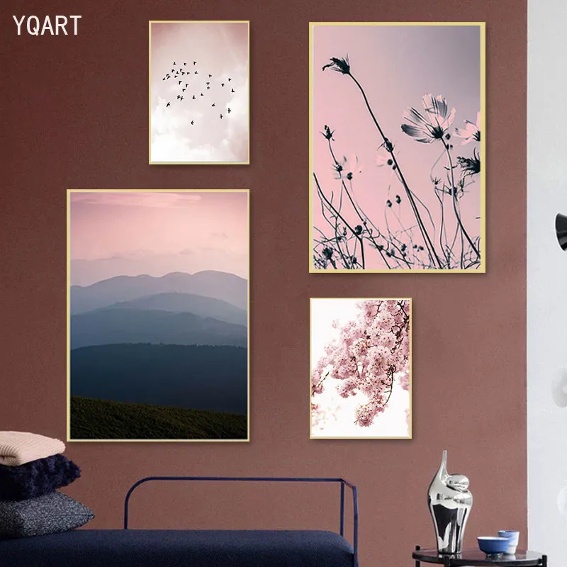 Картина с изображением розовых цветов вишни в скандинавском стиле, ...
