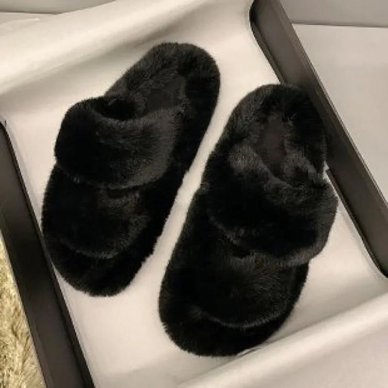 Женские меховые шлепанцы, мягкие меховые сандалии, плоская подошва,...
