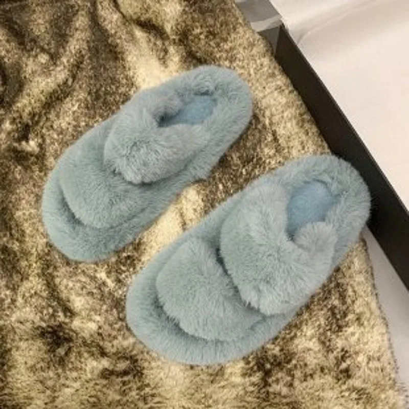 Теплые пушистые шлепанцы для женщин, уютные сланцы для пола из иску...