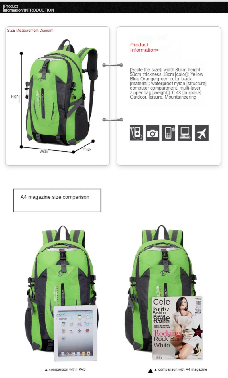 Дорожные альпинистские Рюкзаки 40 л, дорожные сумки унисекс, водоне...