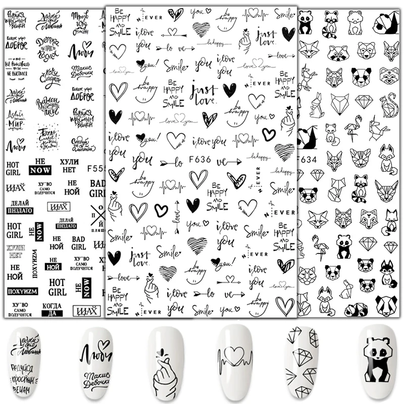 1 шт. наклейки для ногтей цветок лист Бабочка панда любовь сердце К...