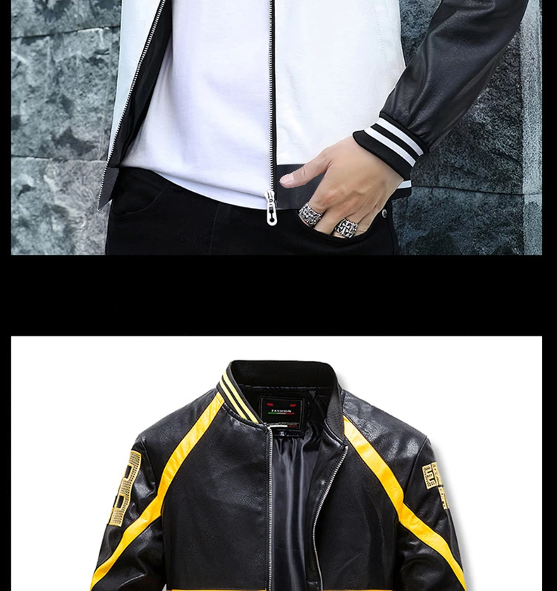 Мужская мотоциклетная кожаная куртка, осенняя бейсбольная куртка, М...