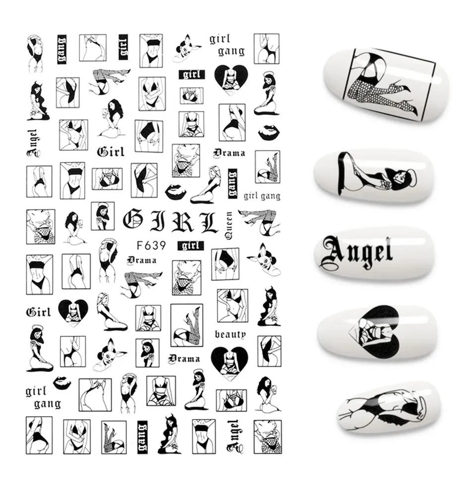 1 шт. наклейки для ногтей цветок лист Бабочка панда любовь сердце Картина Сексуальная Девушка Декор для ногтей Фольга маникюрные наклейки для ногтей