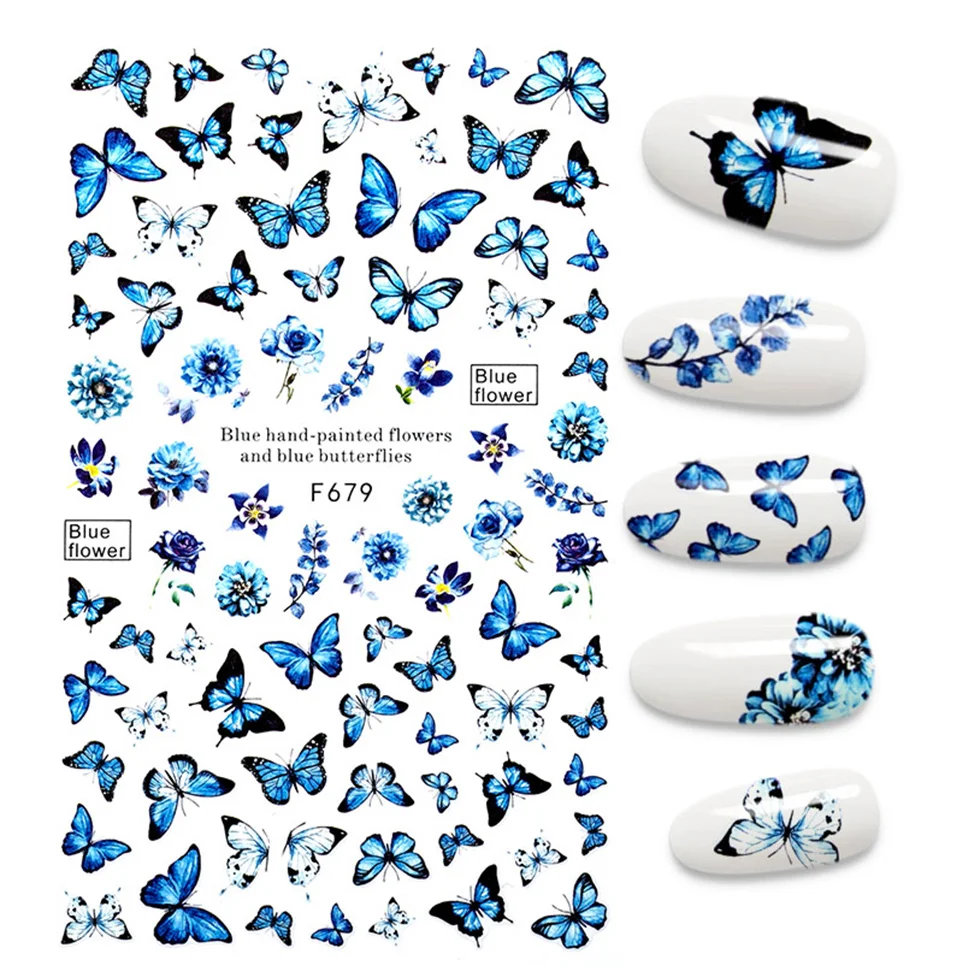 3D наклейки для ногтей, наклейки с бабочками, цветами для ногтей, ф...