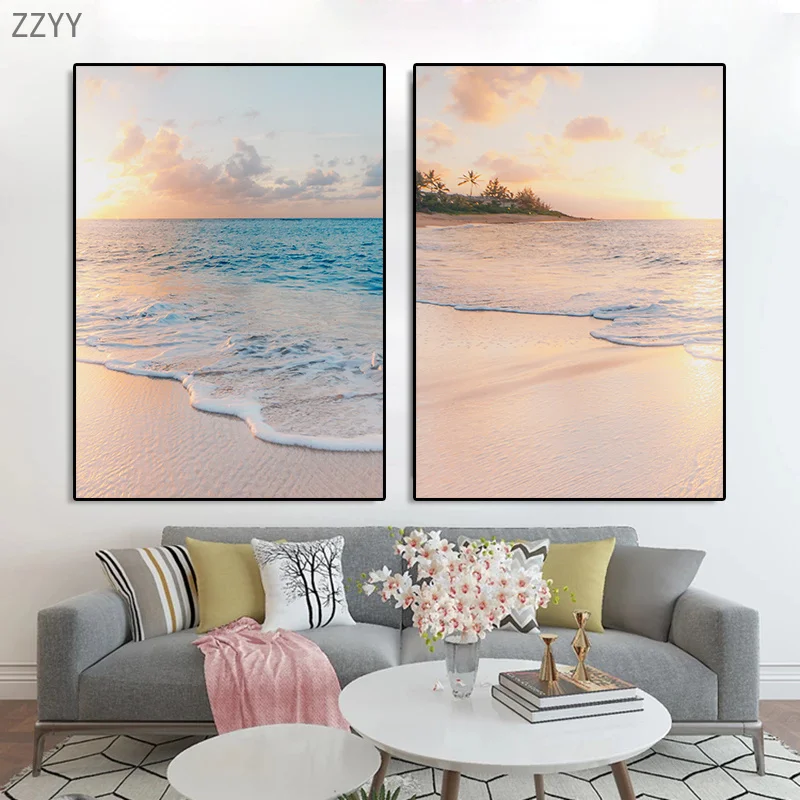 Скандинавский эстетический пейзаж, морской пляж, восход и закат, картины на холсте, постеры и принты, простая комната