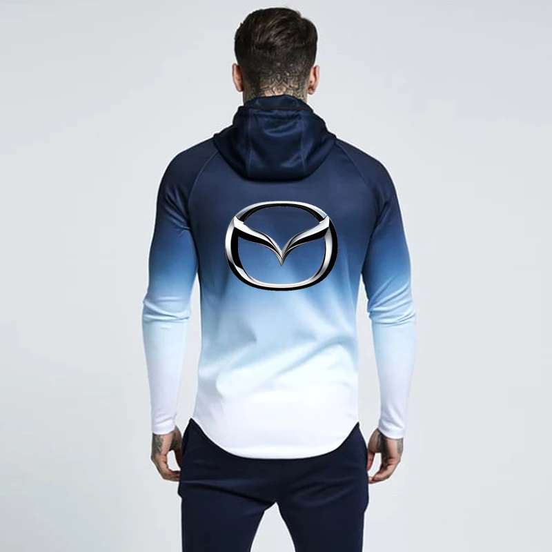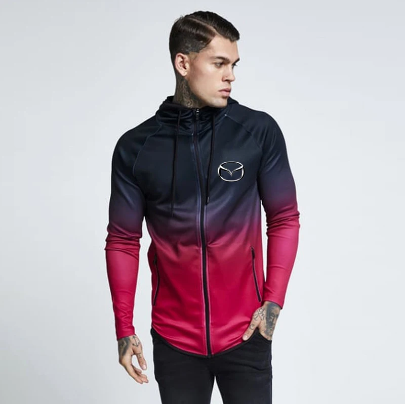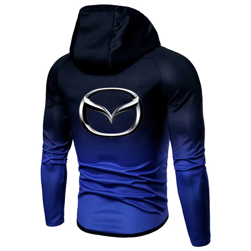 Демисезонная куртка на молнии, толстовки с капюшоном, одежда с градиентным переходом логотипа автомобиля Mazda, флисовая толстовка с длинным рукавом, Мужская и Женская толстовка с капюшоном