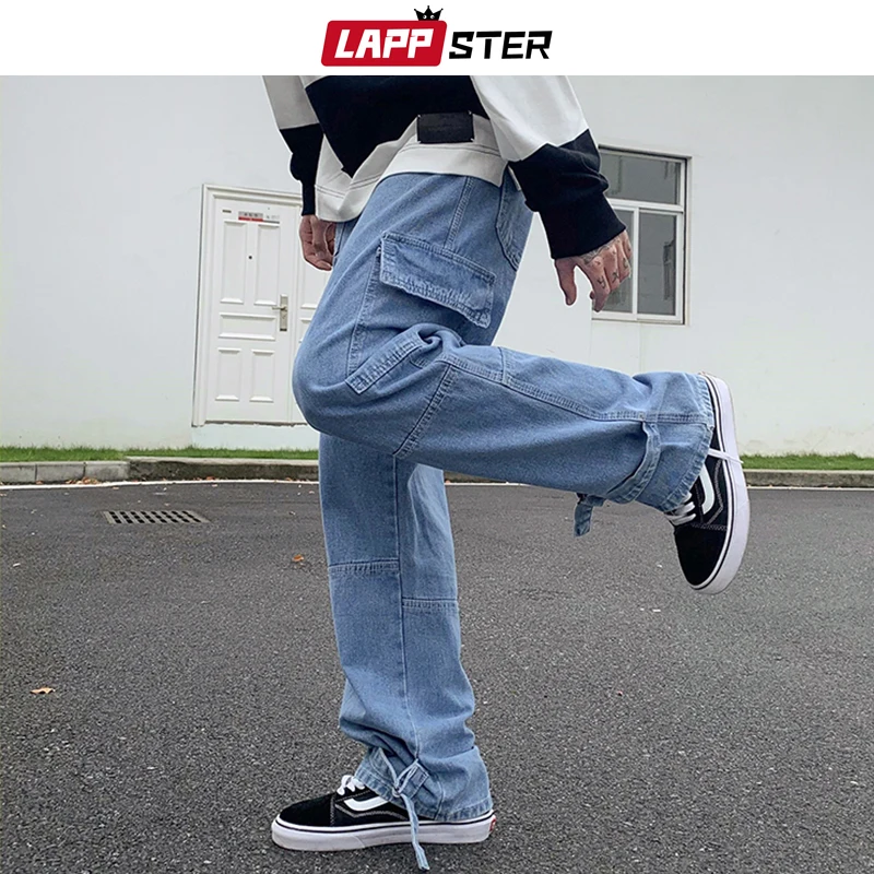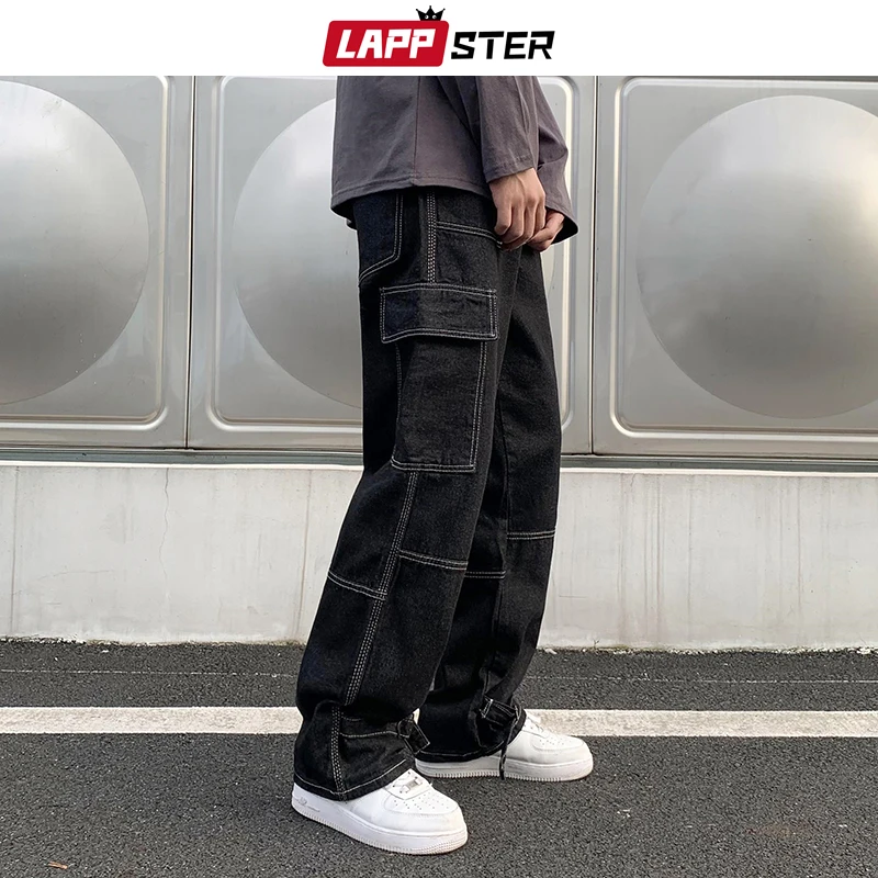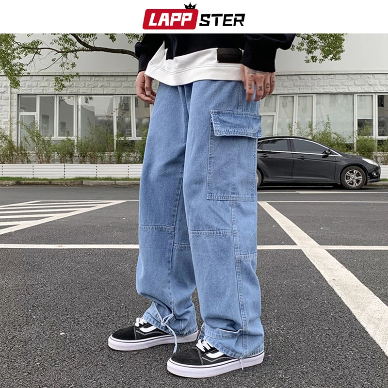 Мужские джинсовые брюки LAPPSTER в стиле Харадзюку с широкими штани...