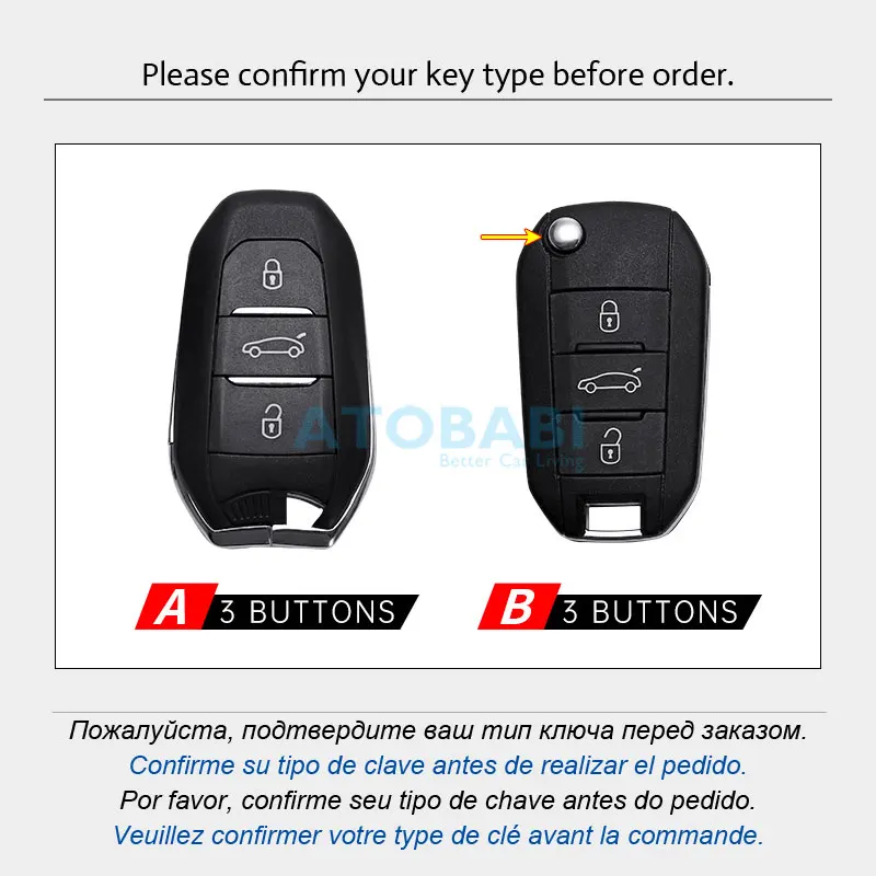 Чехол для автомобильного ключа из цинкового сплава ATOBABI с дистанционным управлением, защитная крышка для Peugeot 3008 208 308 508 2008 5008 DS DS4 DS5 Citroen C4 B78 Opel, автомобильные аксессуарыХарактеристики и характеристики:1. Бренд: ATOBABI2. Материал: цинковый сплав и силикон3. Кнопки: 34. Отличное соответствие размеру ключа и точному положению кнопки.5. Защитите ваши автомобильные ключи от повреждений и царапин.6. Чехол для ключей имеет светящийся эффект.7. Хорошее прикосновение и простота установки.Совместимость с моделями:Подходит для Peugeot 3008 2016-2019Подходит для Peugeot 308 2017-2019Подходит для Peugeot 5008 2017-2019Подходит для DS DS4 2015-2016Подходит для DS DS5 2015-2016Подходит для Citroen C4 (B73R) 2011-2016Подходит для Citroen C4 Picasso (B78) 2014-2019Подходит для Citroen C4 Grand Picasso 2013-2019Подходит для Peugeot 508 2011-2019Подходит для Peugeot 208 2013-2016Подходит для Peugeot 308 (T9) 2015-2016Подходит для Peugeot 2008 2014-2016Подходит для Citroen C4 Cactus 2014-2017Подходит для Opel Corsa Gs line 2020(Примечание: Совместимость только для справки, пожалуйста, сравните изображение с ключом автомобиля перед покупкой.)Посылка включает:Чехол для автомобильного ключа-1 шт.1 х кольцо для ключей(Брелоки для автомобильных ключей в комплект не входят.)