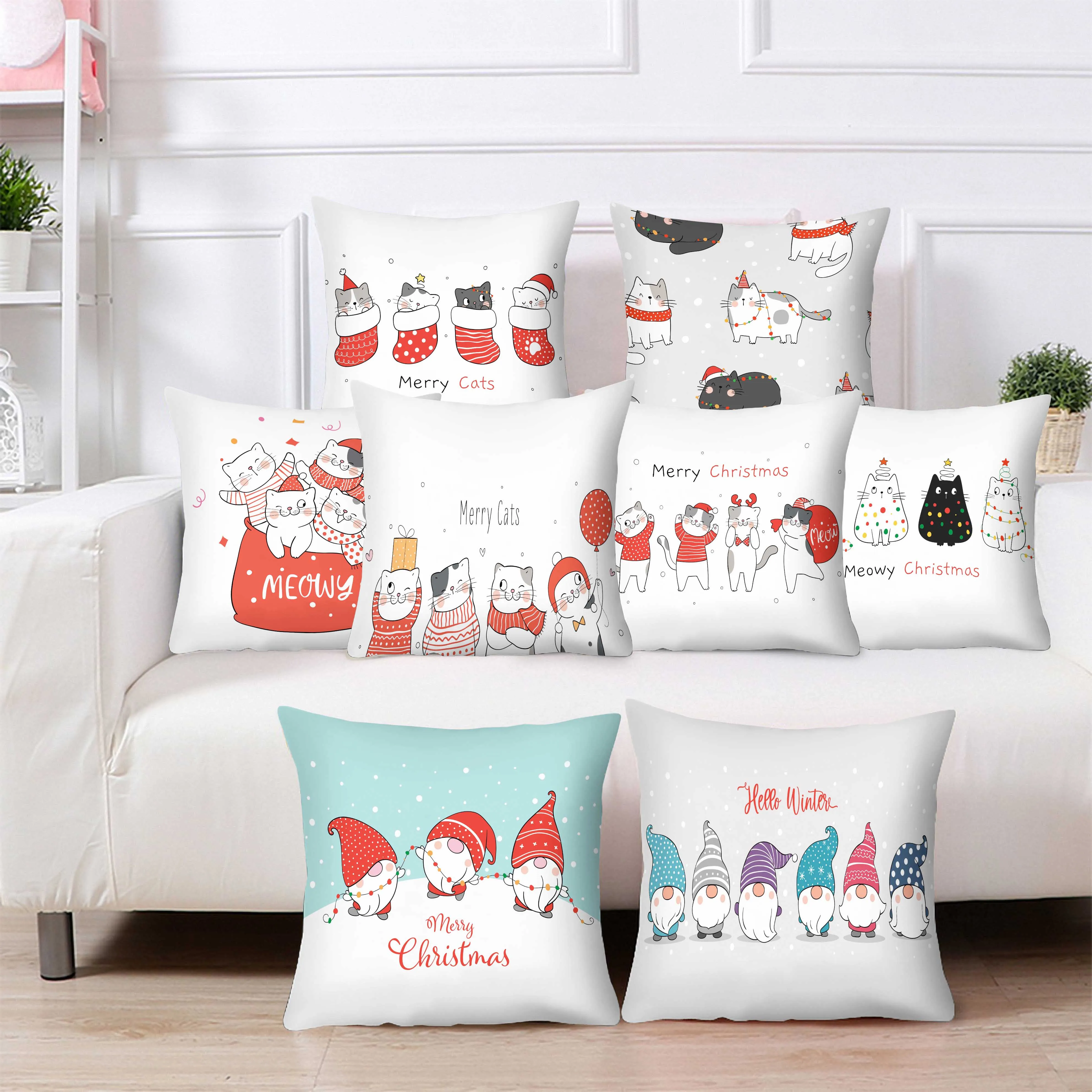 Рождественская наволочка, наволочка с изображением животного, кота, домашний декор, наволочка с принтом, автомобильные наволочки 45x45 см, декоративные подушки для дивана