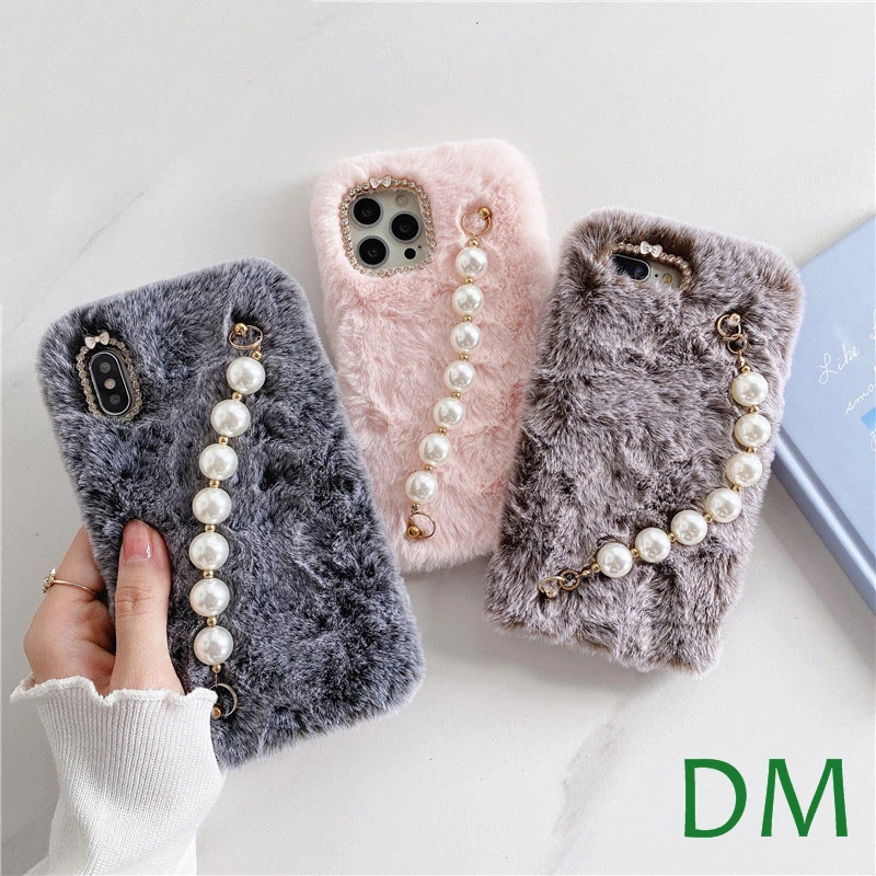 PopuplarPearl bracelet chain diamond rabbit fur case
