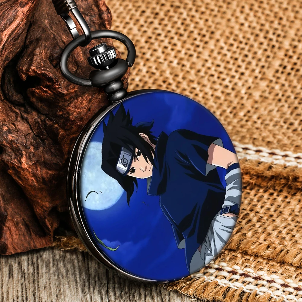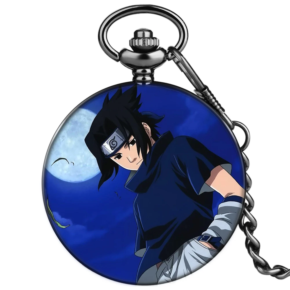 Мужские и женские наручные часы, темно-синие кварцевые часы с цепочкой 36 см, с японским мультяшным рисунком