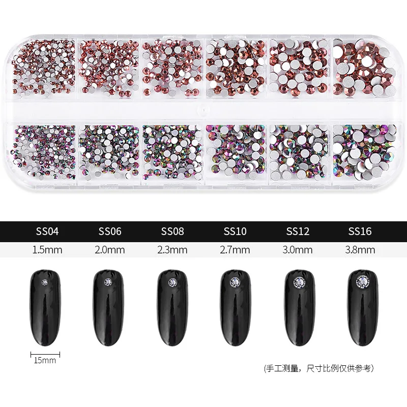 1 чехол смешанные размеры AB плоские Стразы для ногтей разные цвета...