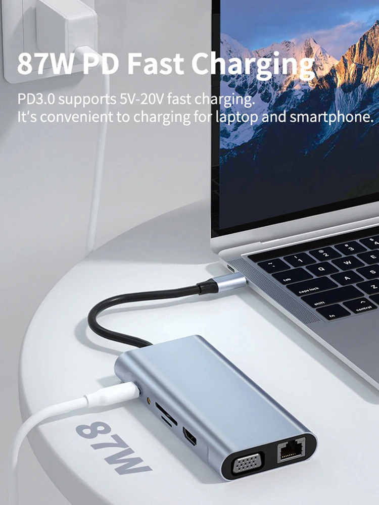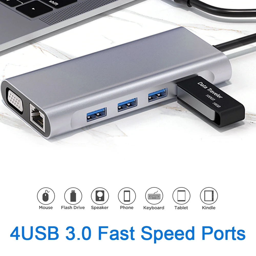 USB-хаб 11 в 1 с портом USB Type-C на HDMI, совместимый с USB 3,0