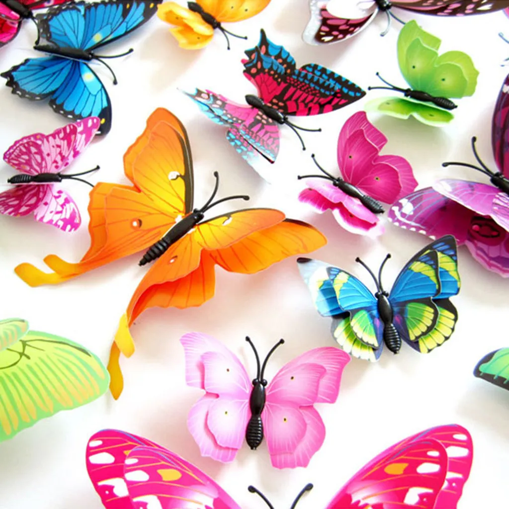 12 шт.компл. двухслойные смешанные цвета имитация бабочки 3D наклейки зеркальные наклейки для холодильника