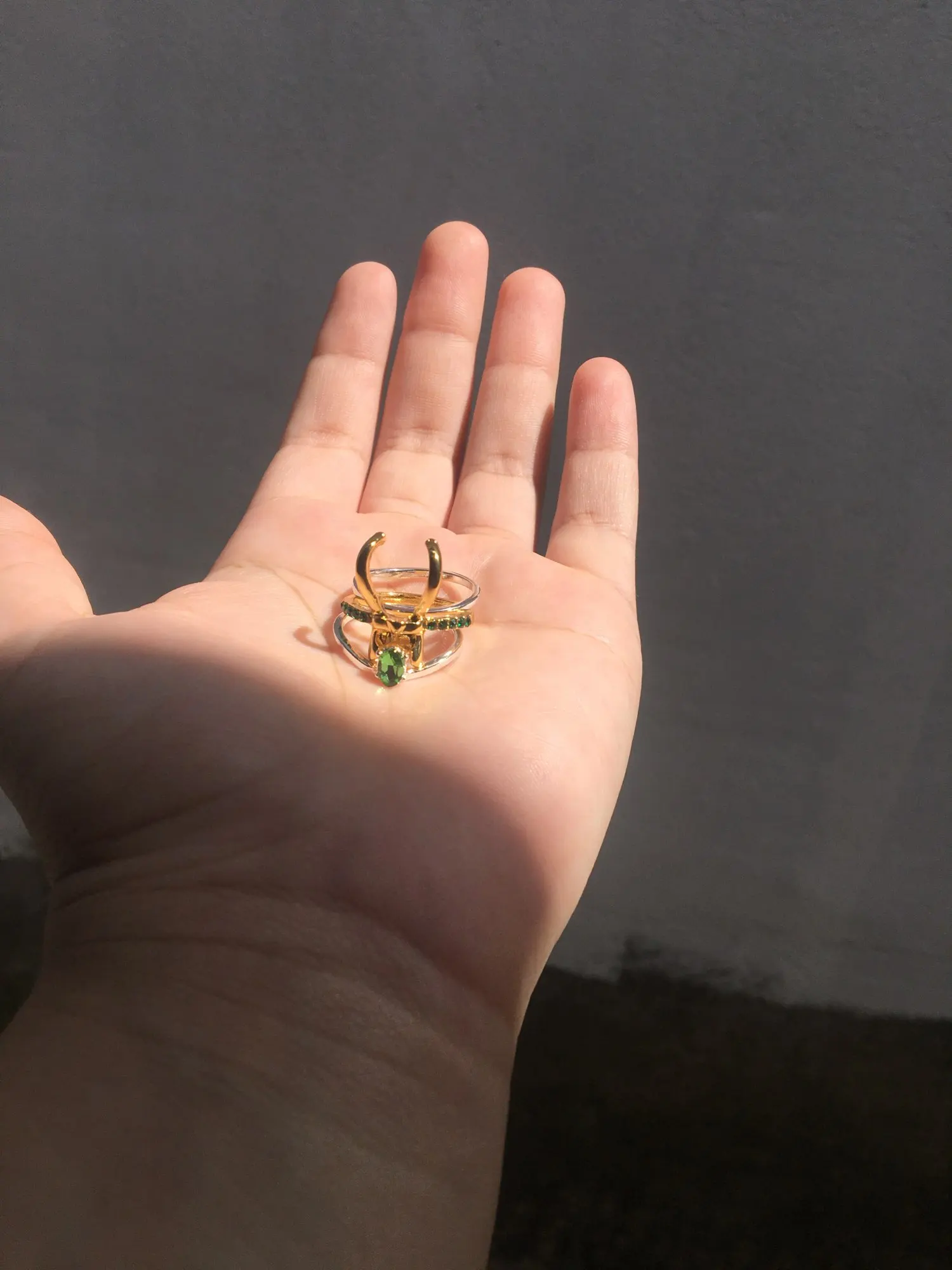 Кольцо для шлема loki 3 в 1 с зеленым кристаллом, модные трендовые ...